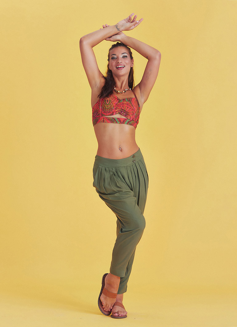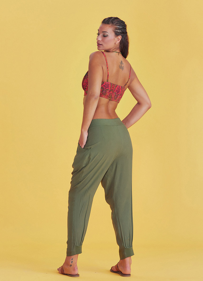 Bağlama Detaylı Beli Lastikli Yeşil Etnik Pantolon 6790