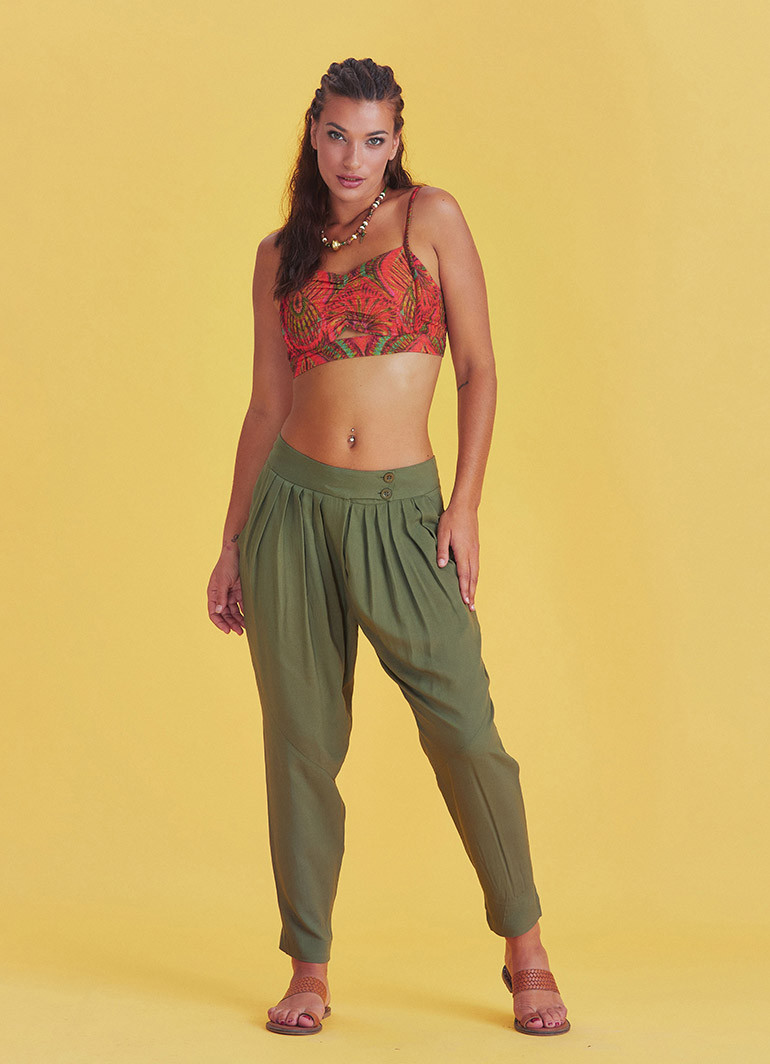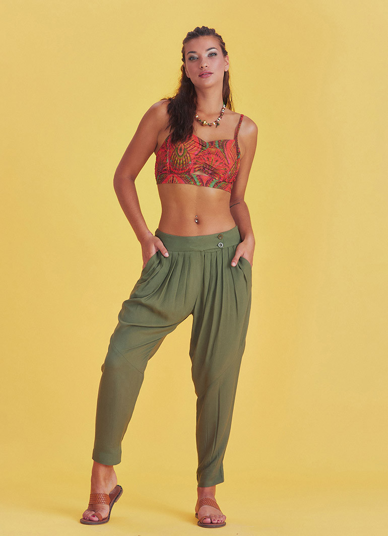 Haki Desenli Düğmeli Otantik Şalvar Pantolon 5005
