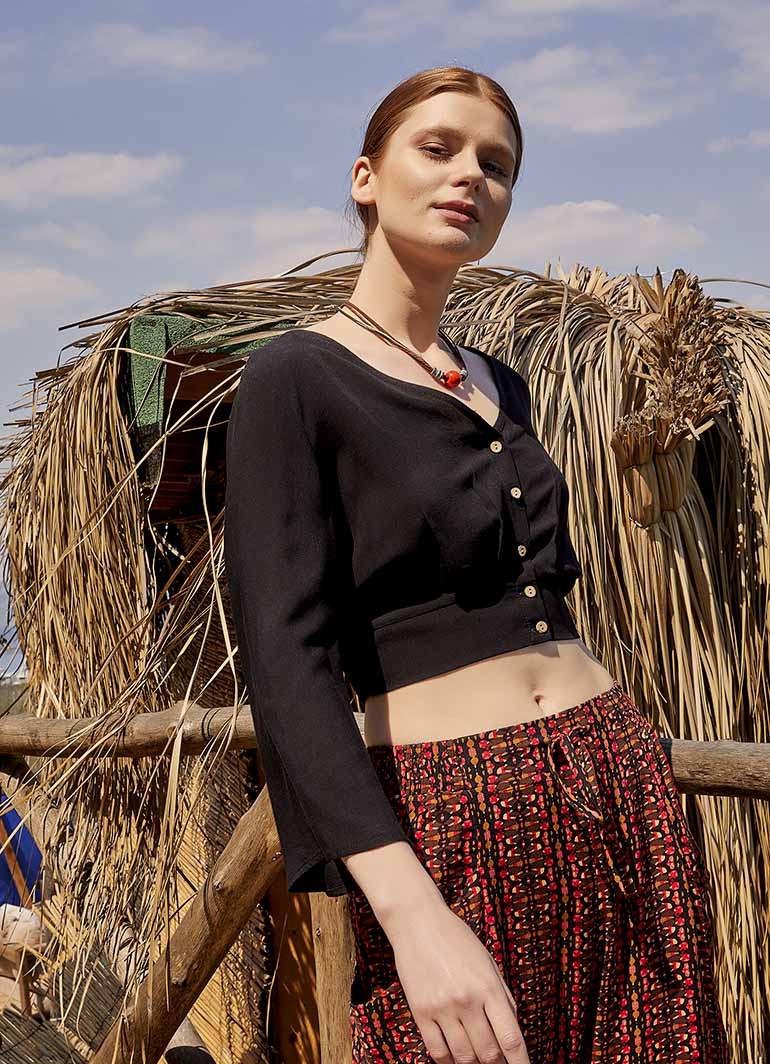 Bu bluz modelinde S beden giyinmiştir. Türkiye'de üretilmiştir.Kumaş Bilgisi ve Yıkama%100 dokuma viskon. Kayın ağacından elde edilmiş doğal selülozdan dokunmuş kumaştandır. Çok hafif ve dökümlüdür. Polyester içermez, sizi terletmez. Çamaşır makinasında 30 derecede yıkayabilirsiniz.