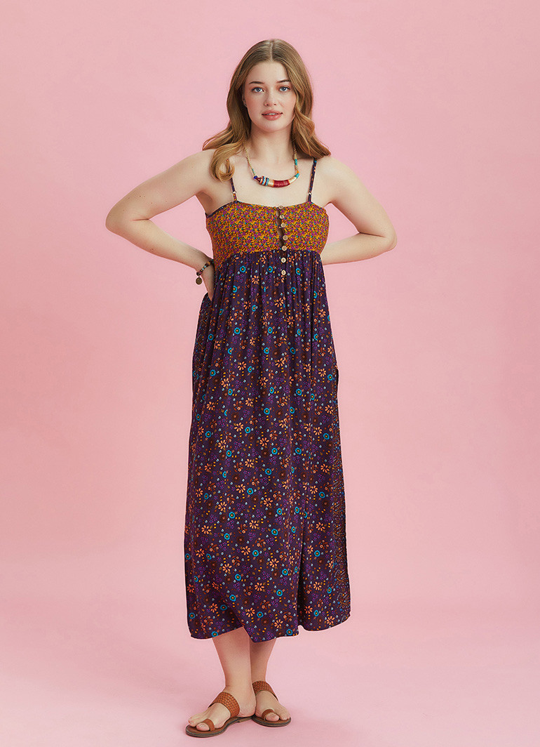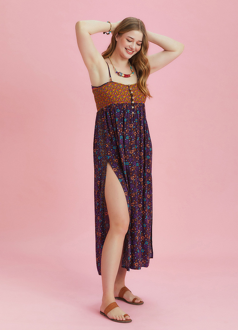 Ayarlanabilir İnce Askılı, Derin Yan Yırtmaçlı, Düğmeli Sırt Kapama, Uzun Elbise, Büyük Beden Elbise