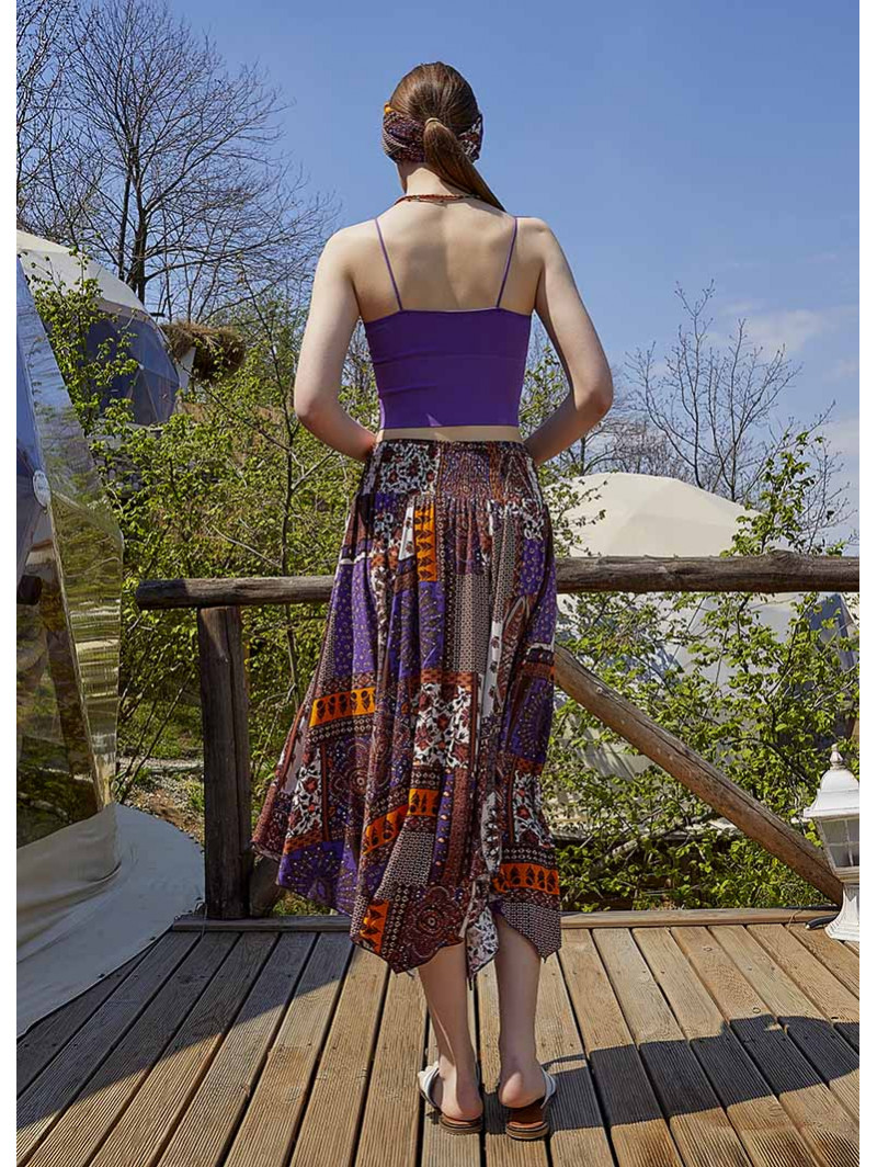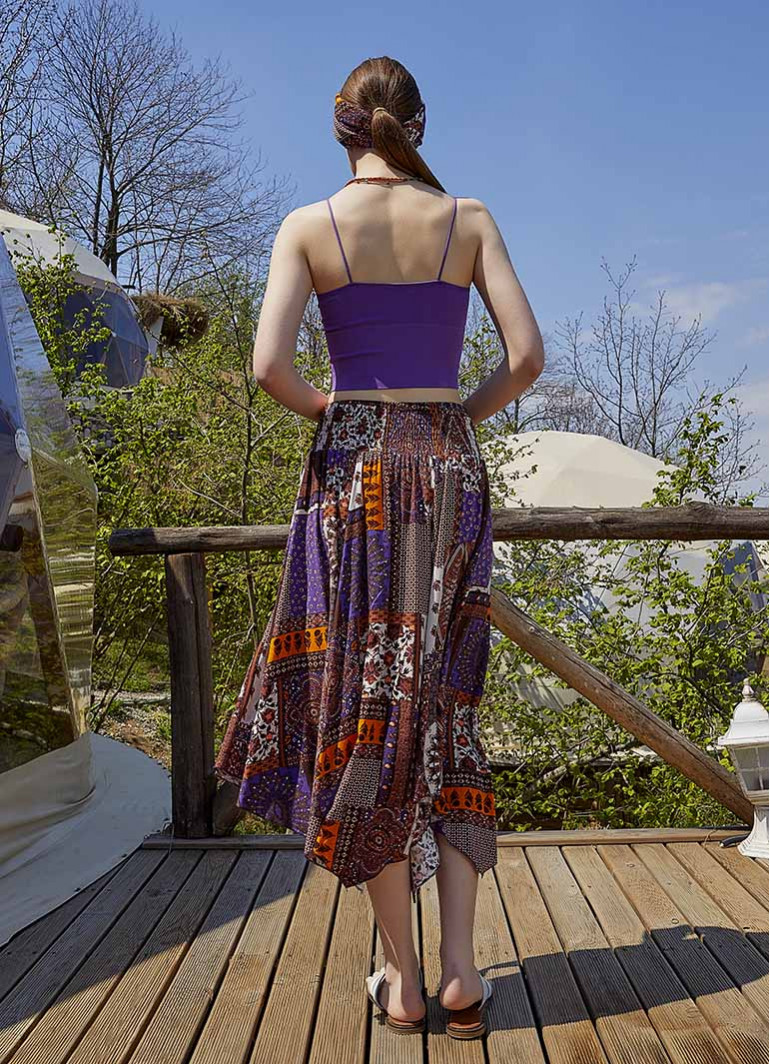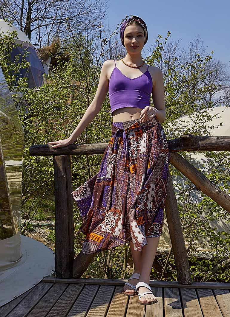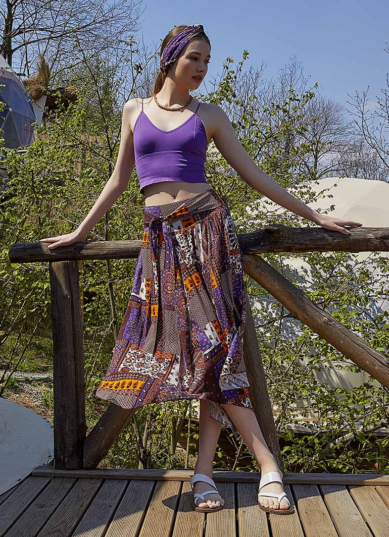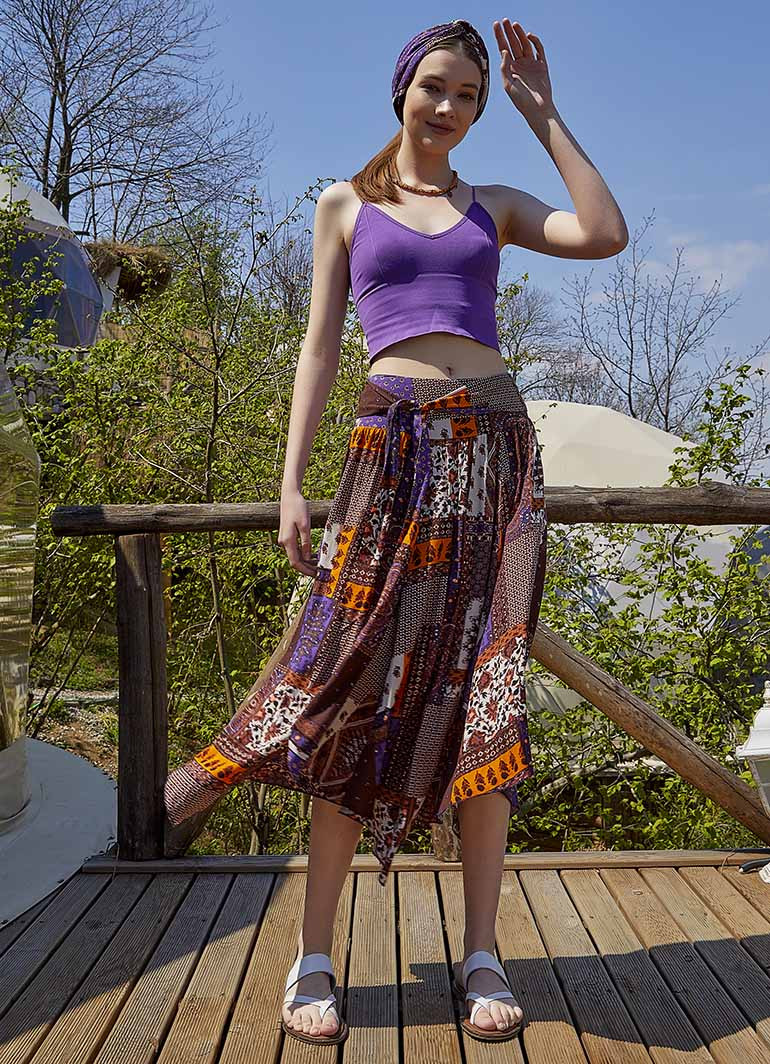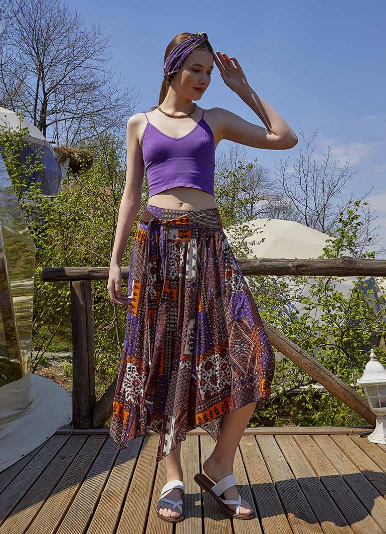 Beli Bağlamalı, Etnik Desenli, Midi Boy Etek