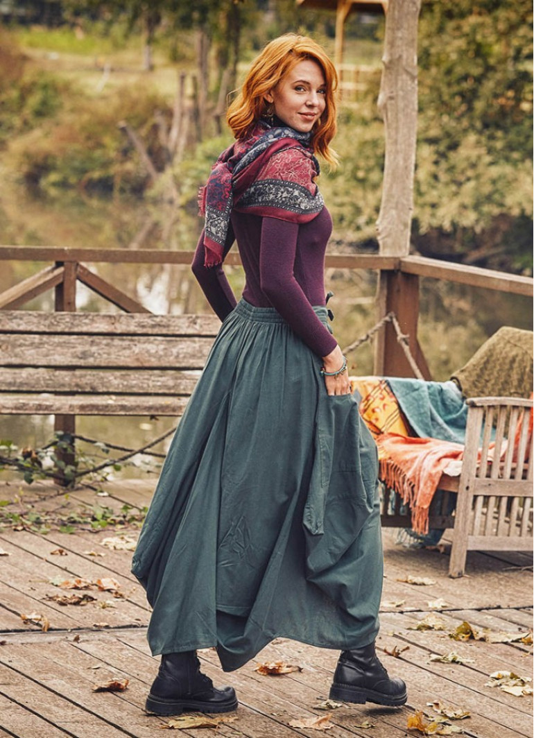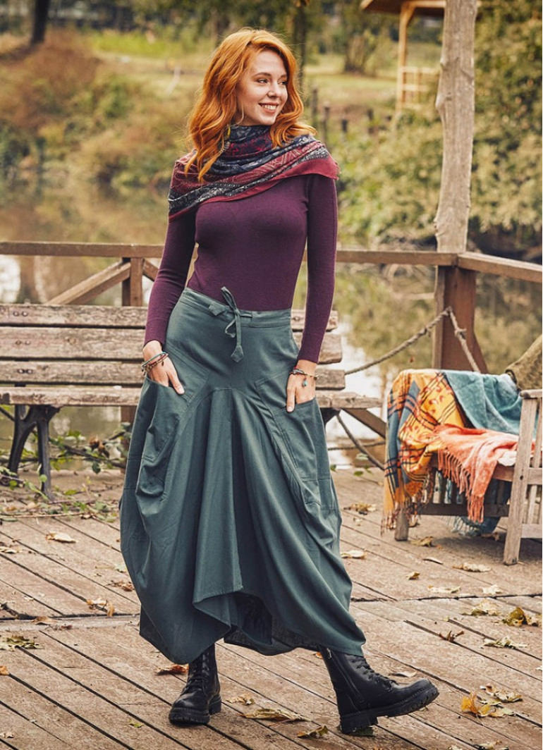 Lastikli, Cep Detaylı, Uzun, Asimetrik Etek