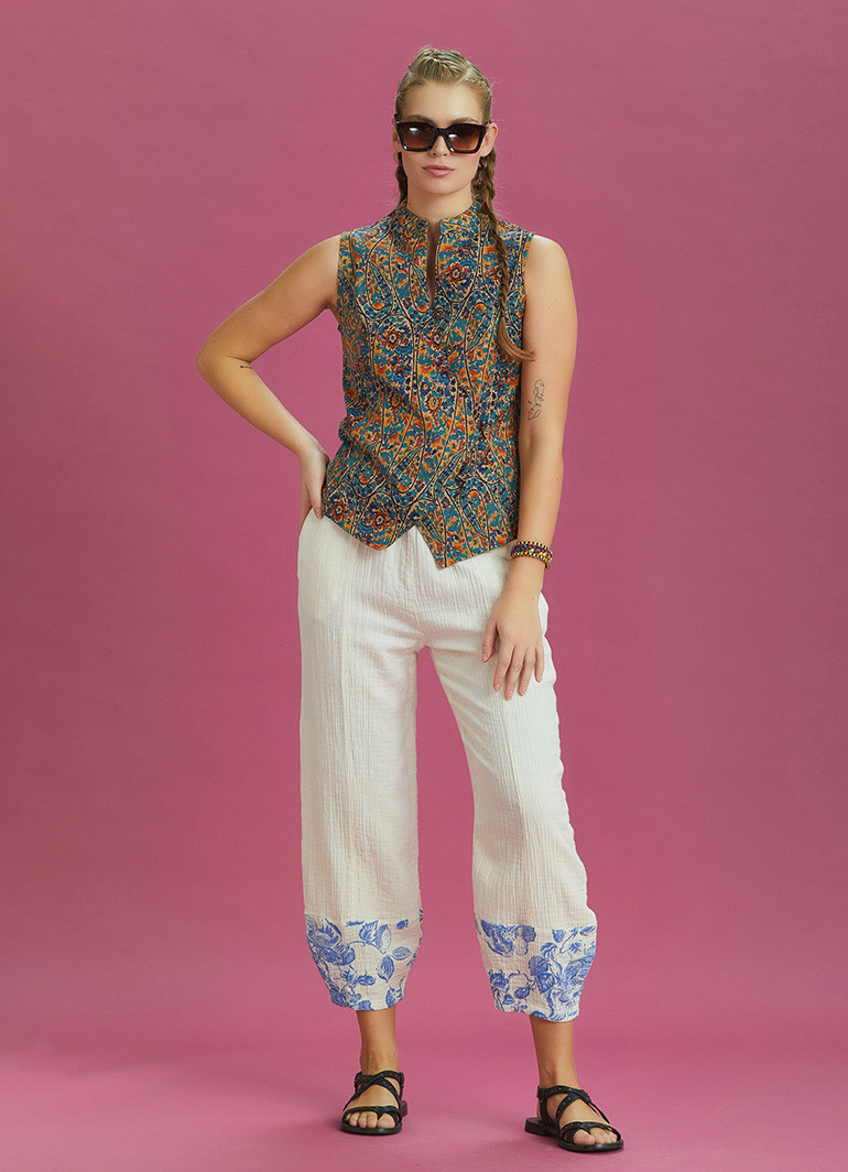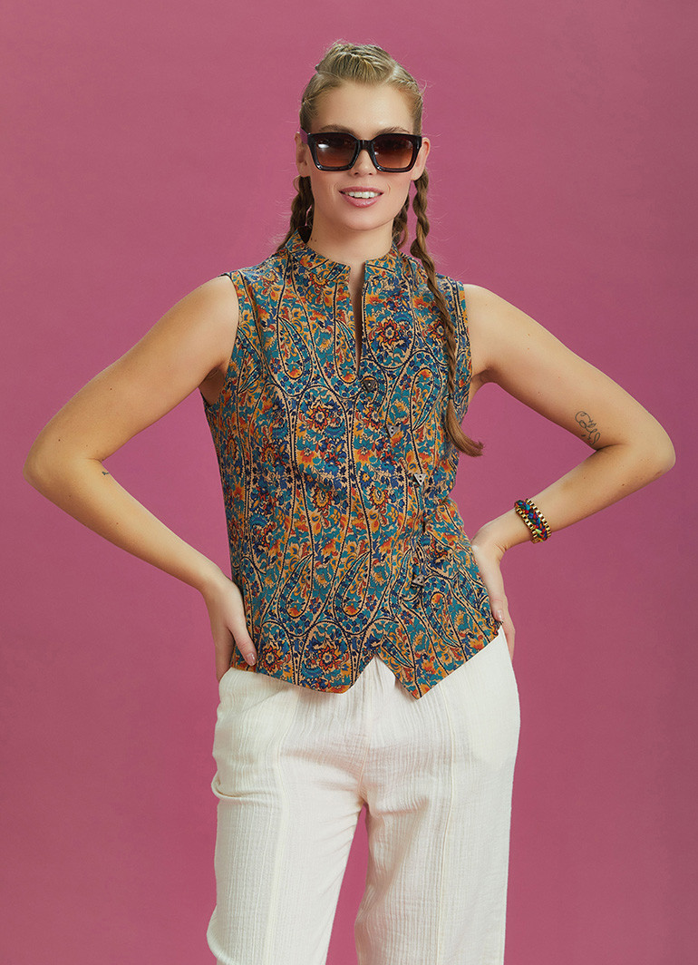 Bohem stilin zarafetini ve etnik desenlerin enerjisini buluşturan bu çapraz düğmeli bluz, özgün detaylarıyla stilinize farklı bir hava katar. Hakim yaka ve kısa kollu yapısıyla rahat bir kullanım sunarken, çapraz bağlanan coconut düğmeler hem doğal hem de şık bir görünüm oluşturur.