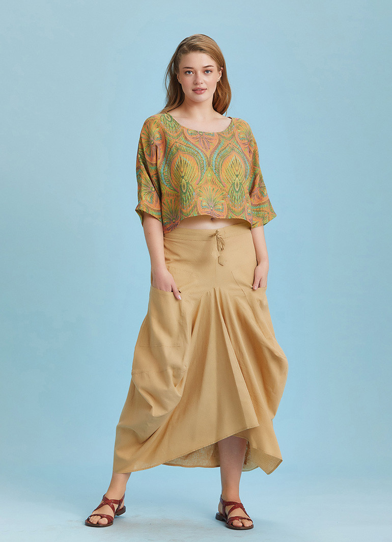 Lastikli, Cep Detaylı, Uzun, Asimetrik Etek, Uzun Etek, Büyük Beden Etek