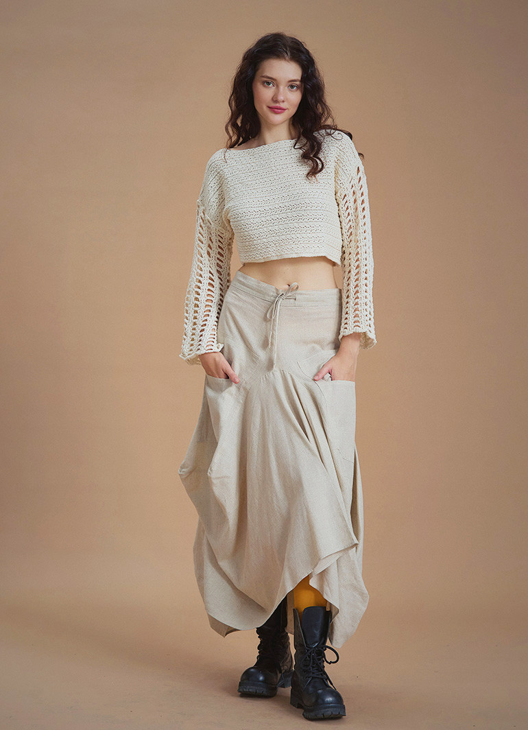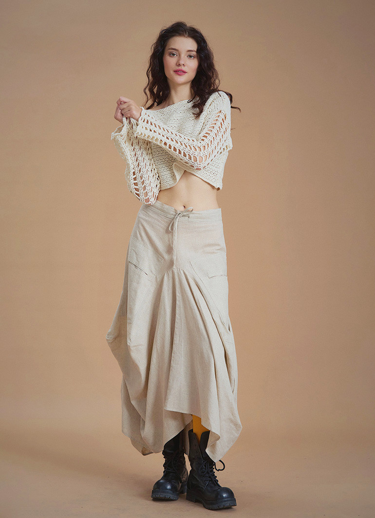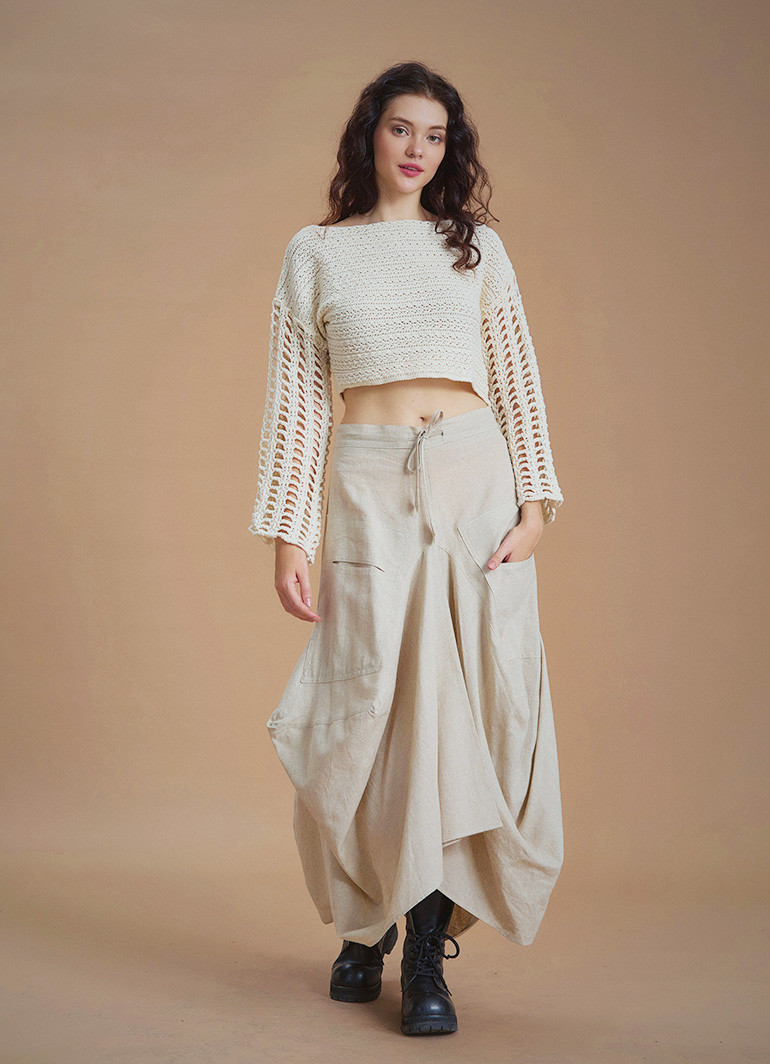 Bohem Beli Bağcıklı Cep Detaylı Şalvar Uzun Etek 62