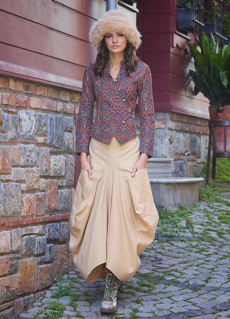 Bohem Beli Bağcıklı Cep Detaylı Şalvar Uzun Etek 62