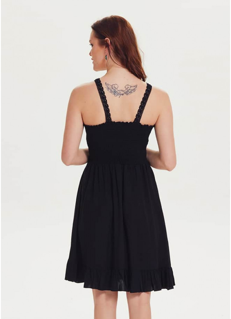 Bohem Tarz Dantel Yaka Askılı Siyah Elbise 1263