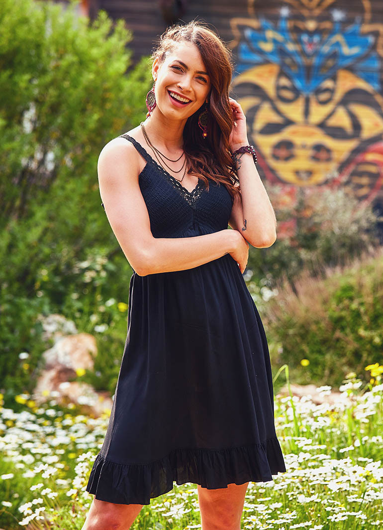 Bohem stilin zamansız şıklığıyla tasarlanan Dantel Yaka Askılı Siyah Elbise 1263, yaz aylarında zarafeti ve ferahlığı bir araya getiriyor. İnce askıları ve zarif dantel yaka detayı ile sade ama dikkat çekici bir görünüm sunar.