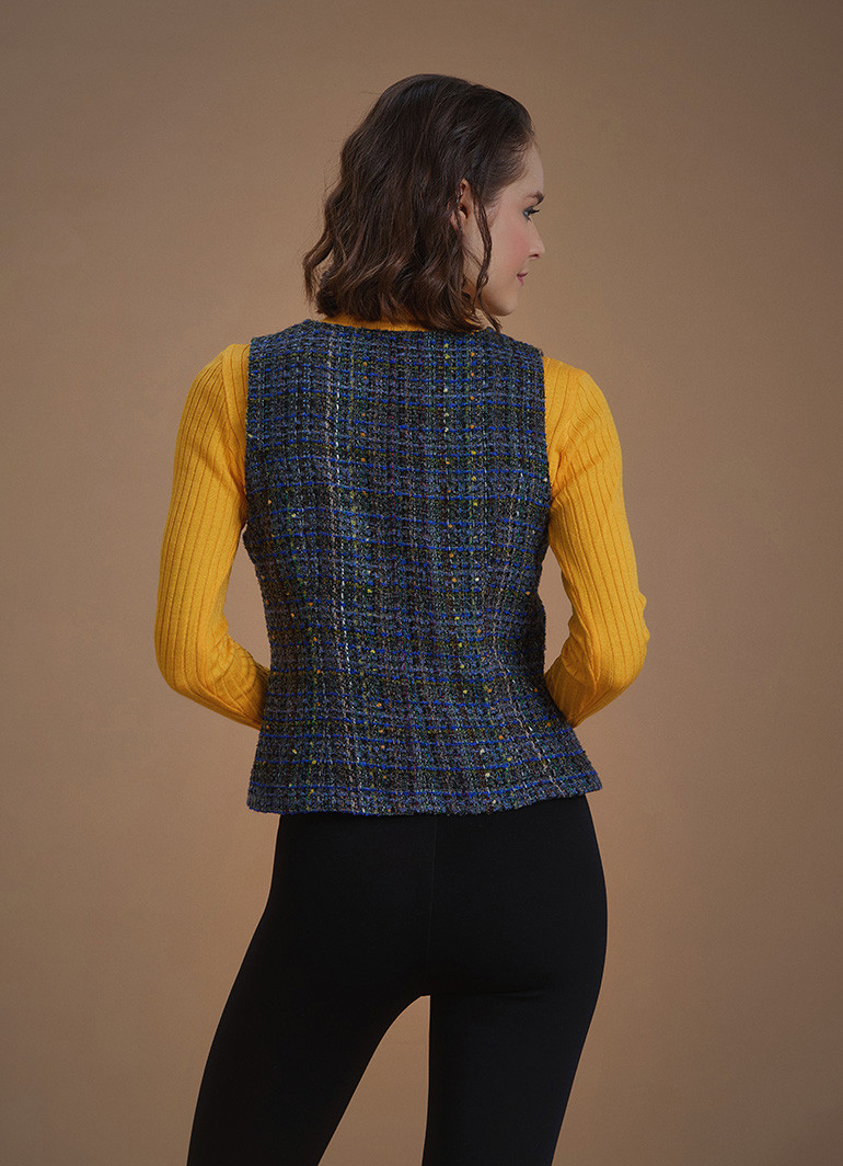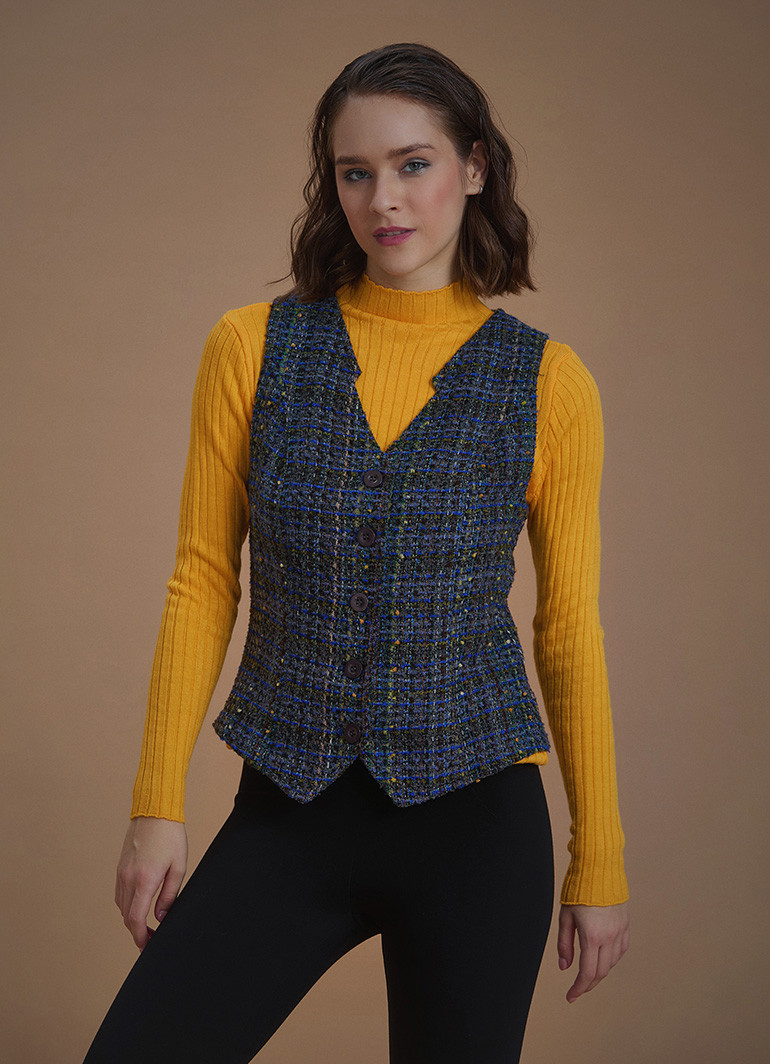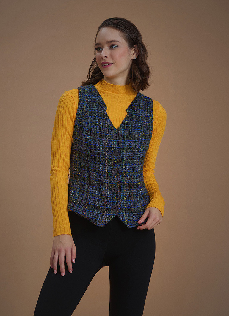Kadife Görünümlü, Doğal Düğmeli, Bohem Tarz, Günlük Yelek