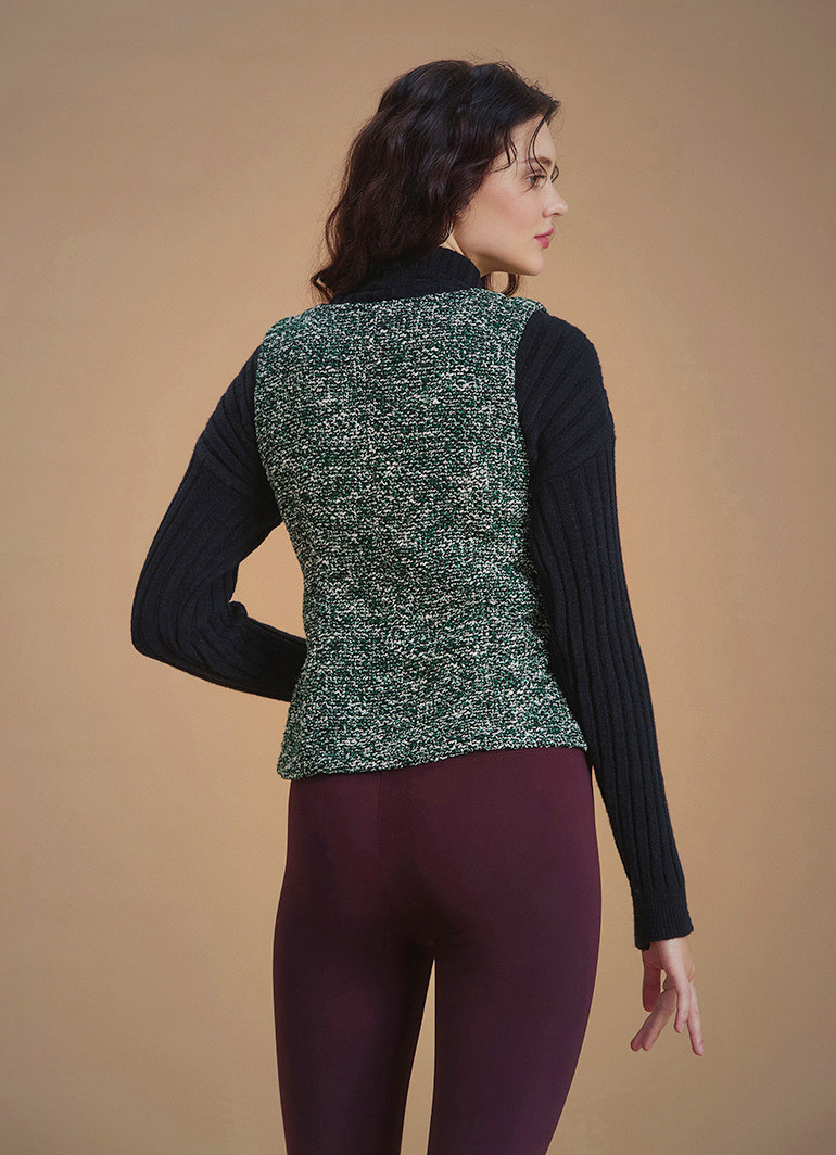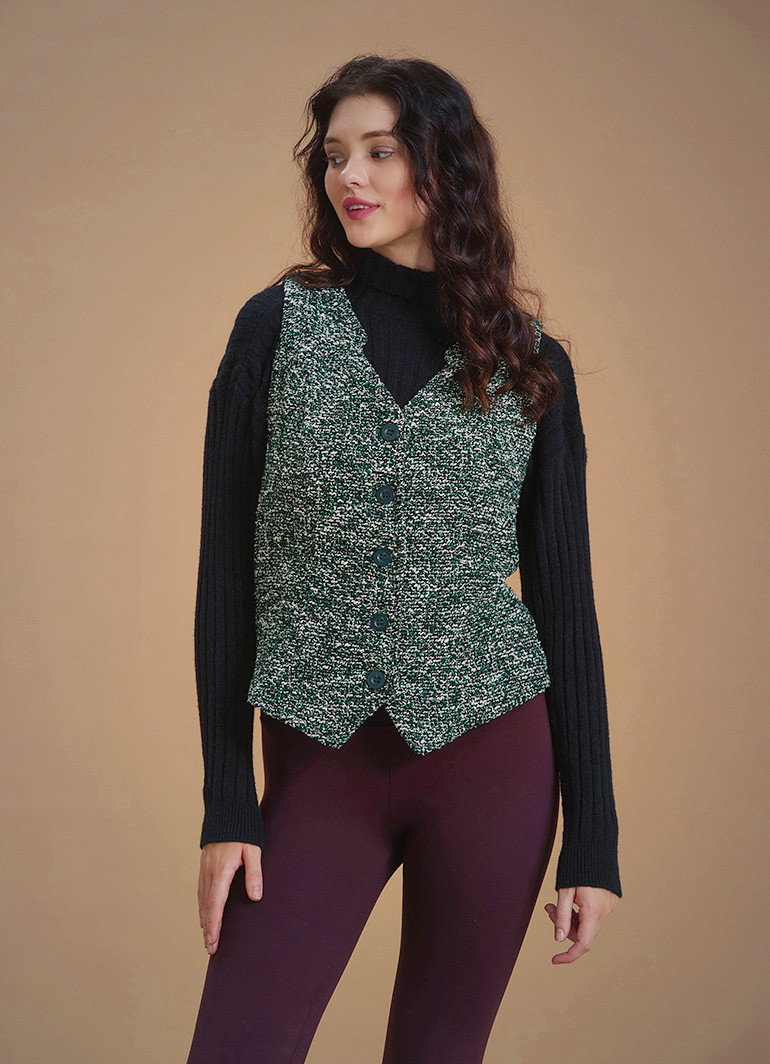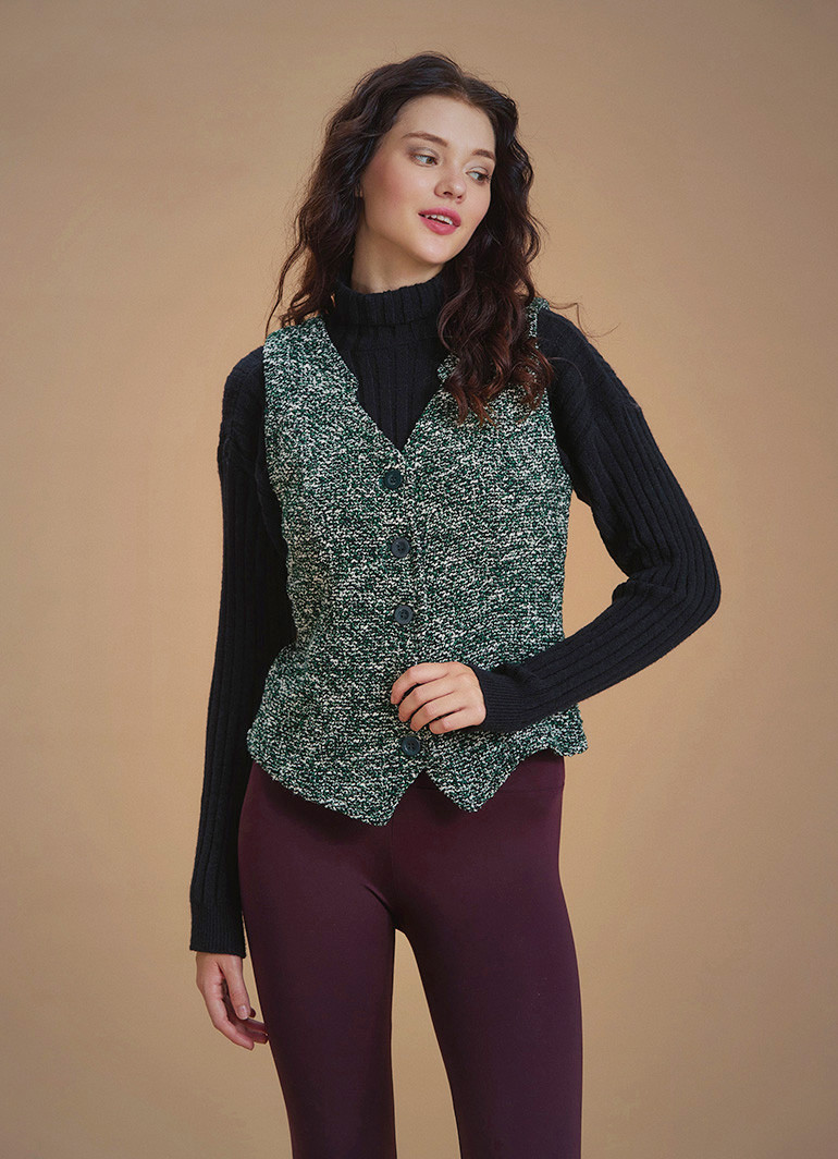 Bohem Tarz Kadın Yeşil Desenli Yelek 6722