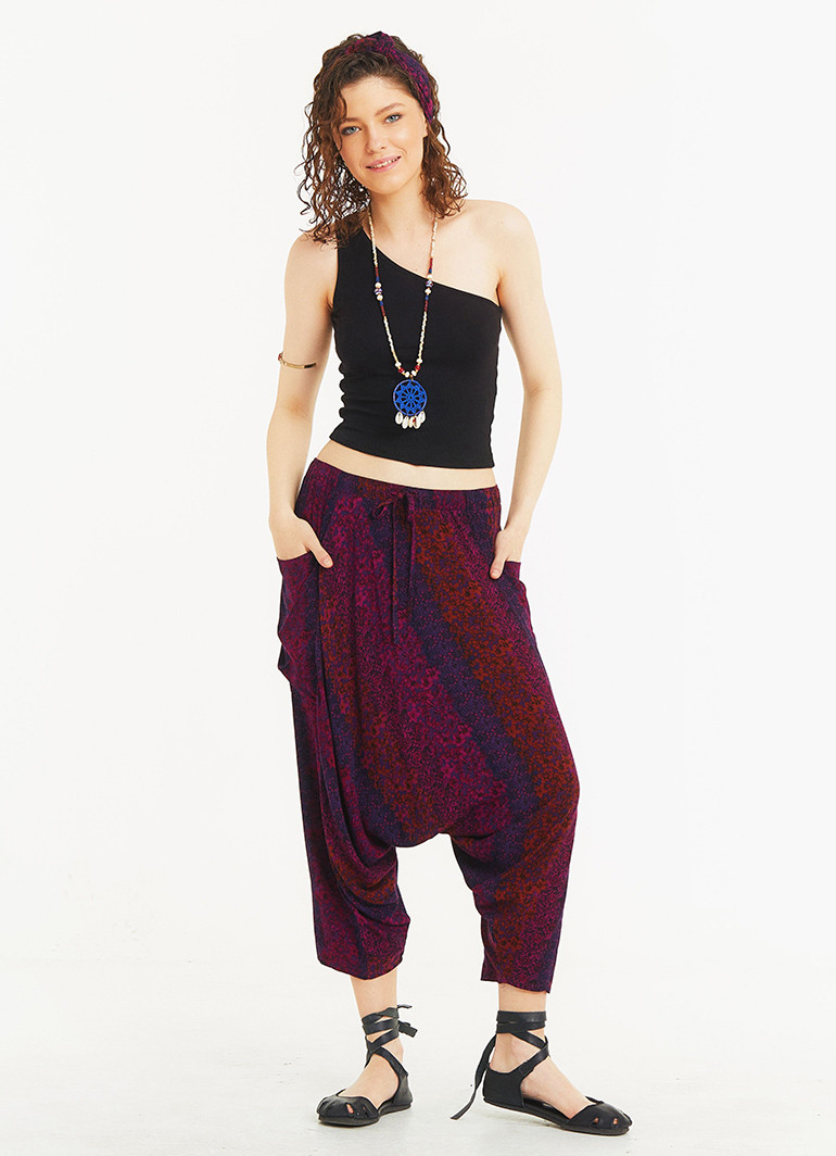 Etnik Desenli, Cep Detaylı, Kapri, Şalvar Pantolon