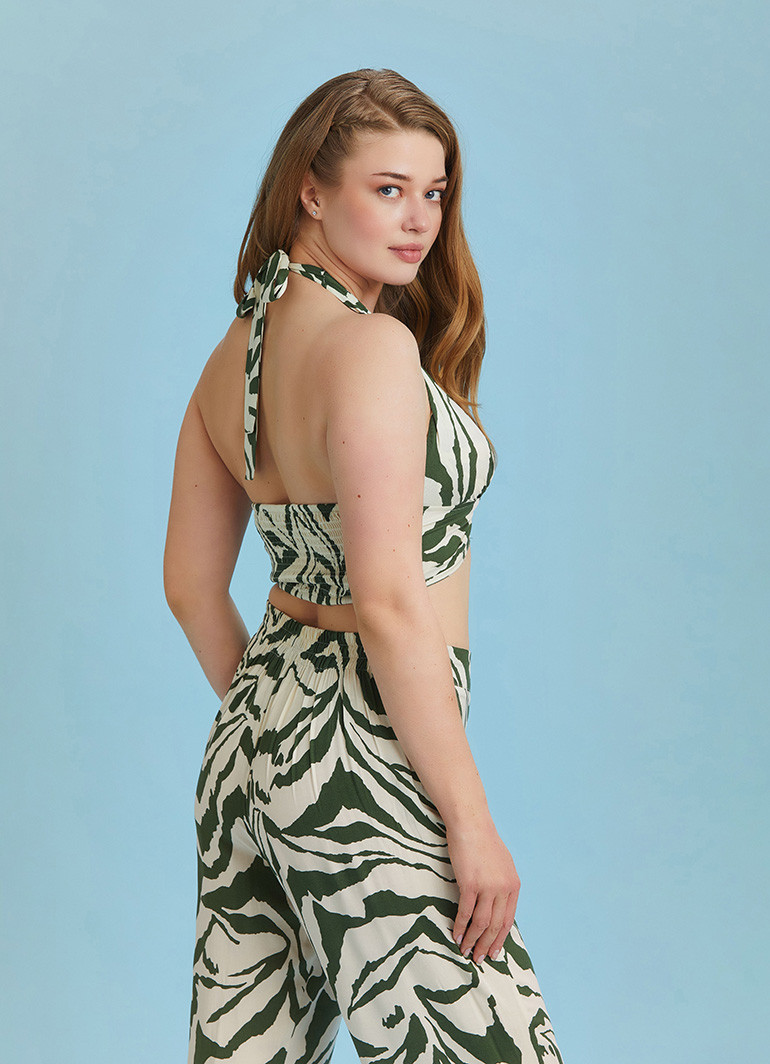 Boyundan Bağlamalı Desenli Büyük Beden Crop Bluz 6396
