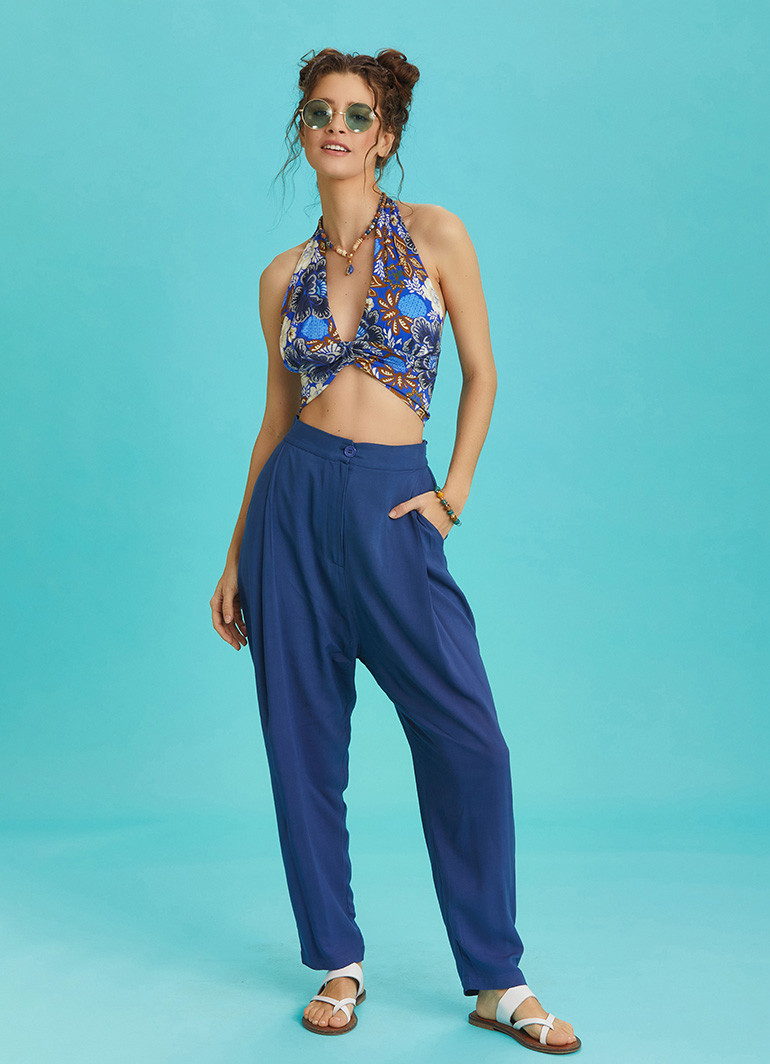 Boyundan Bağlamalı Halter Yaka, Gipe Lastikli Açık Sırt Detay, Şık Crop Bluz