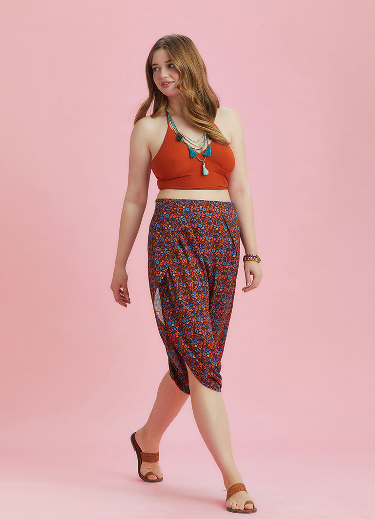 Düşük Bel, Etnik Desen, Kahve Şalvar Pantolon, Büyük Beden Pantolon
