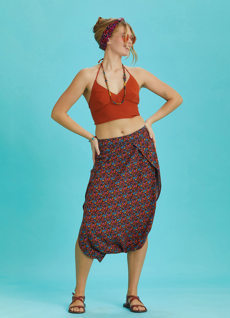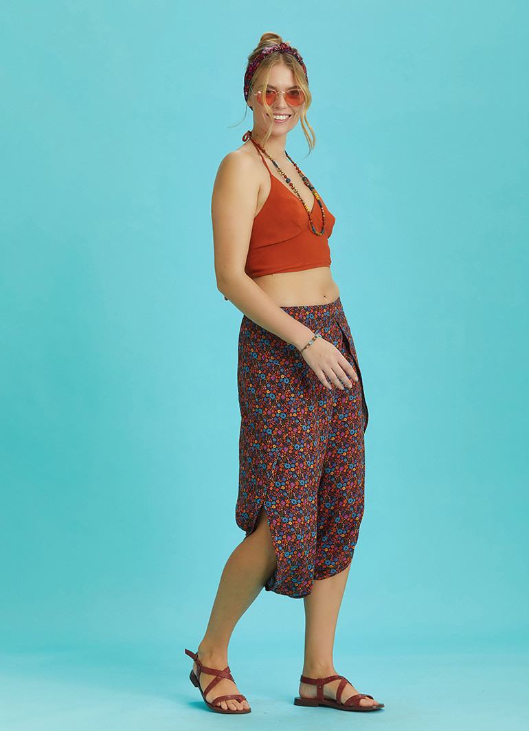 Düşük Bel, Etnik Desen, Kahve Şalvar Pantolon