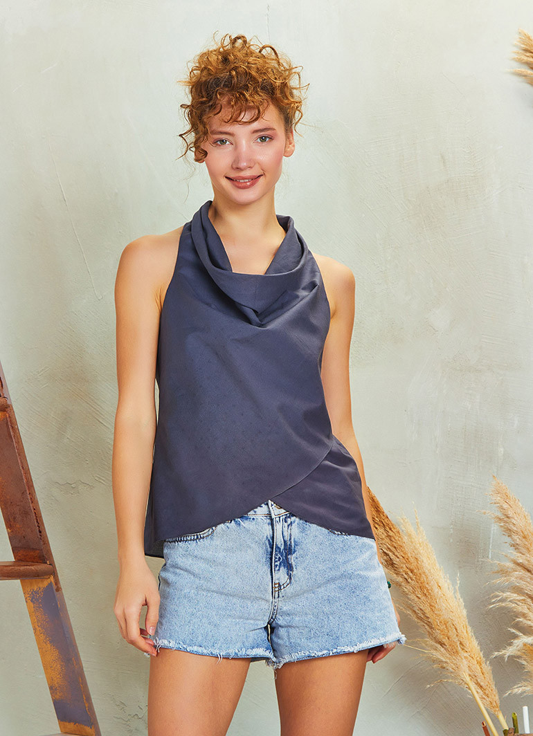 Degaje Yaka Kolsuz Omzu Açık Antrasit Bluz 5240