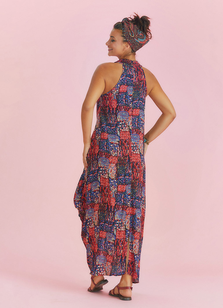 Çapraz Ön Kesim, Arka Yırtmaç Detaylı, Kolsuz, Degaje Yaka, Uzun Elbise