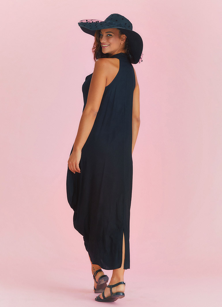 Çapraz Ön Kesim, Arka Yırtmaç Detaylı, Kolsuz, Degaje Yaka, Uzun Elbise
