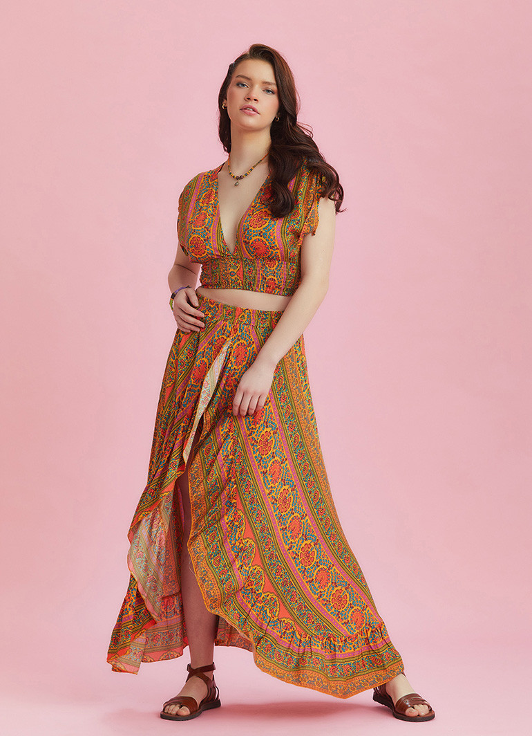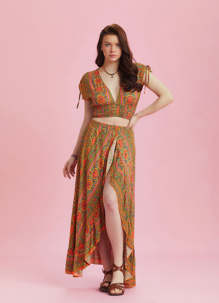 İç Şort Detaylı, Derin Ön Yırtmaçlı, Beli Lastikli, Etek Ucu Fırfırlı, Uzun Etek