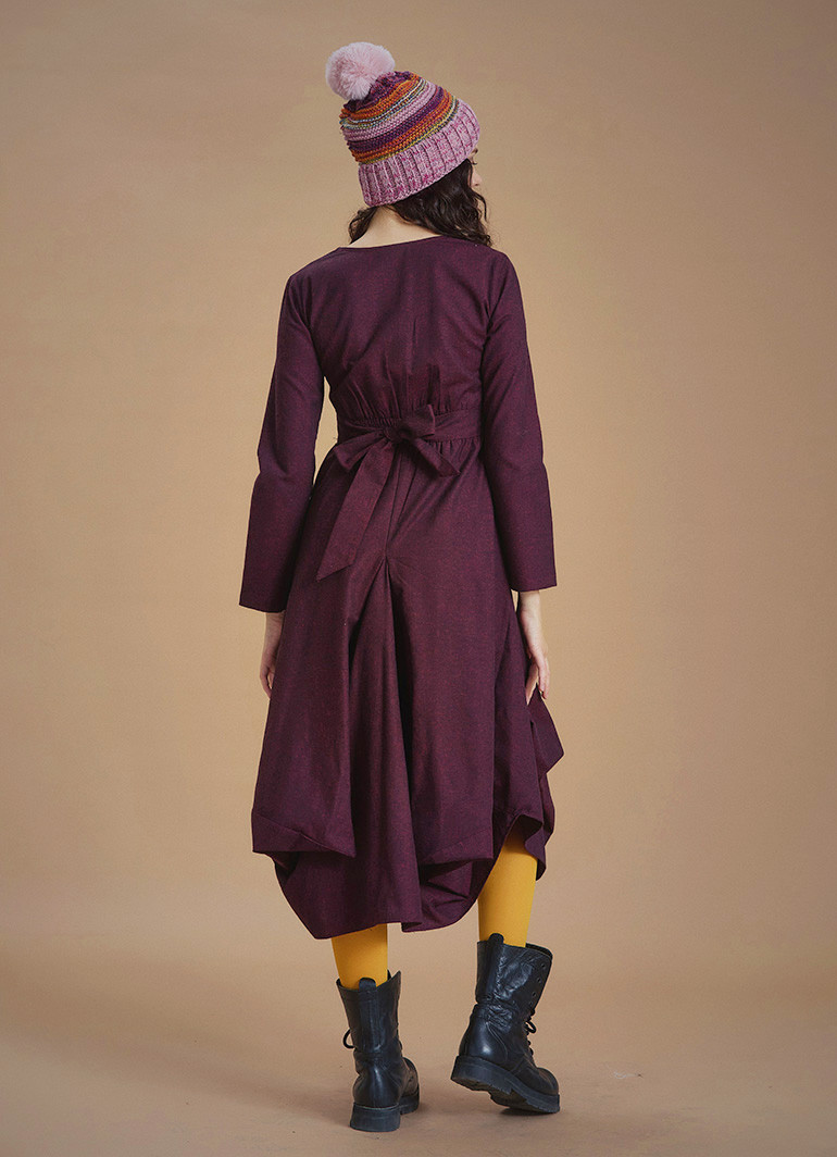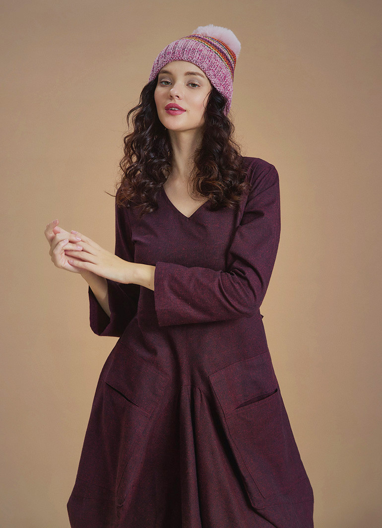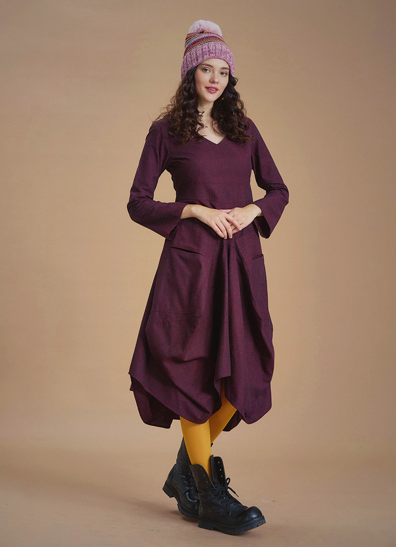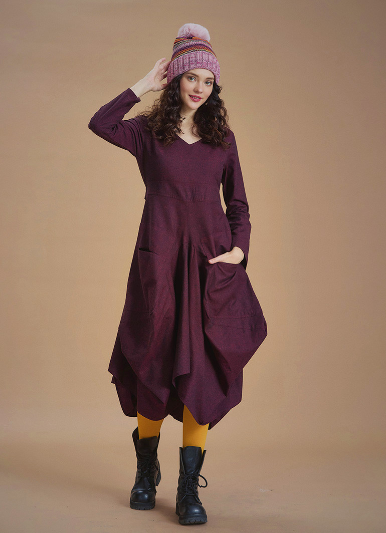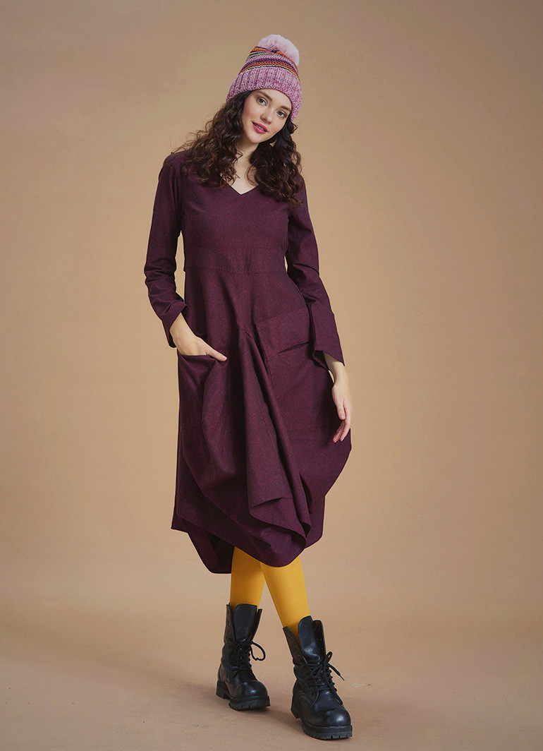 Derin V Yaka Uzun Kollu Balon Lila Elbise 6622