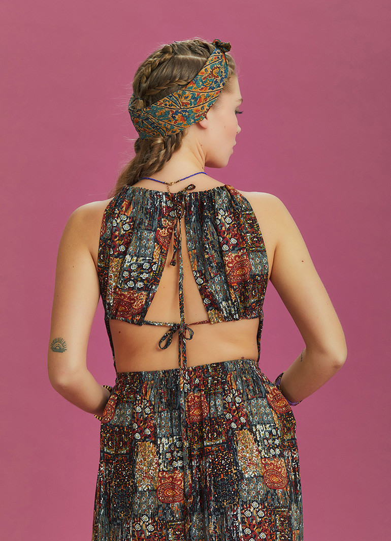Sırt Pencereli Etnik Desenli Cut Out Bohem Elbise 6471