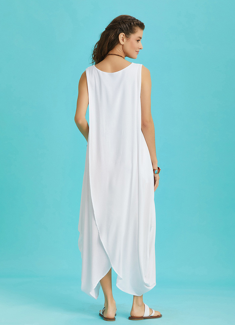 Kayık Yaka, Diyagonal Kesim Anvelop Detaylı, Kolsuz, Bol, Uzun Elbise