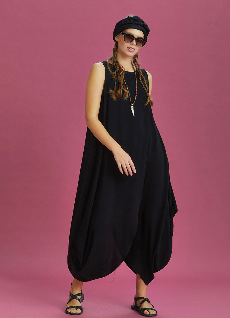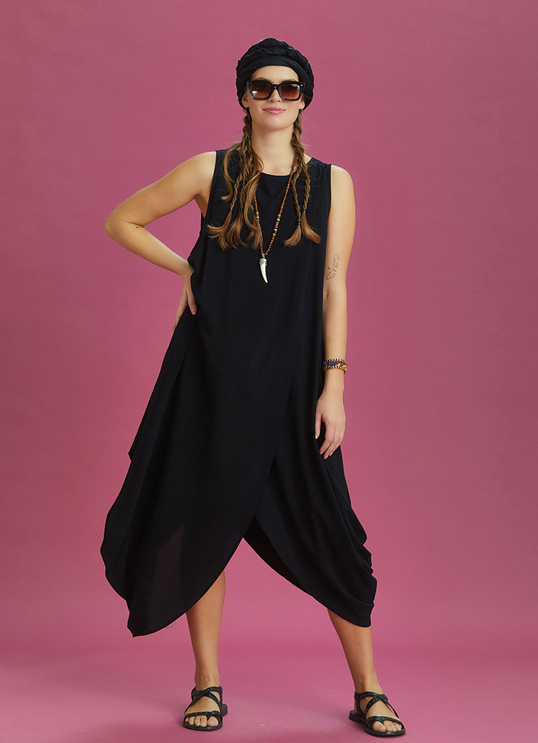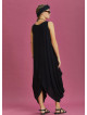 Diyagonal Kesim Ön Katlı Siyah Bol Şık Elbise 6385