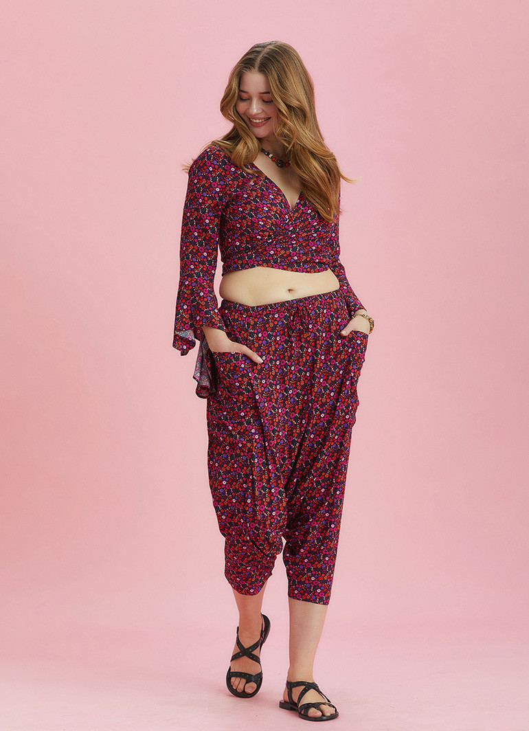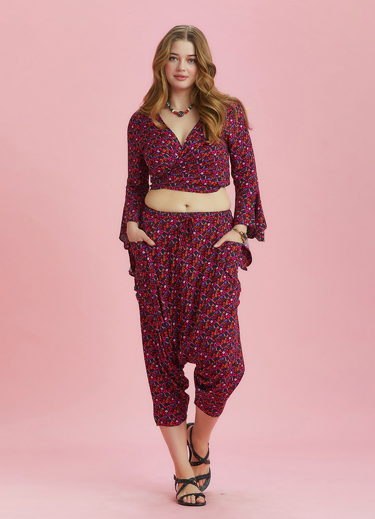 Etnik Desenli Büyük Beden Şalvar Pantolon 6417