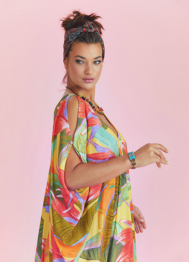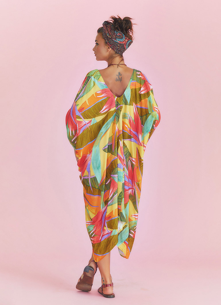 Etnik Desenli, Bohem Tarz, Kayık Yaka, Omzu Açık, Sırt Dekolteli, Otantik Kadın Yazlık Elbise.