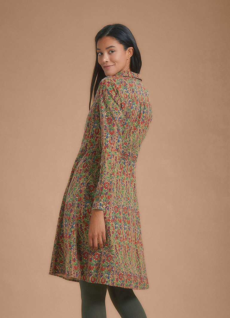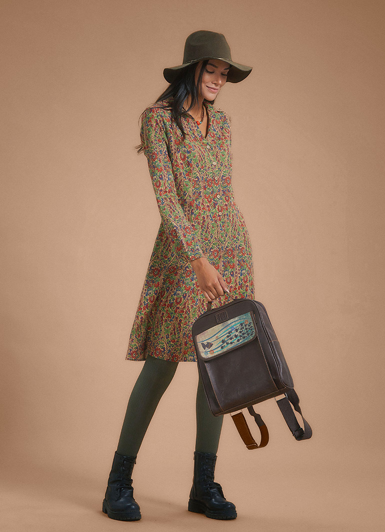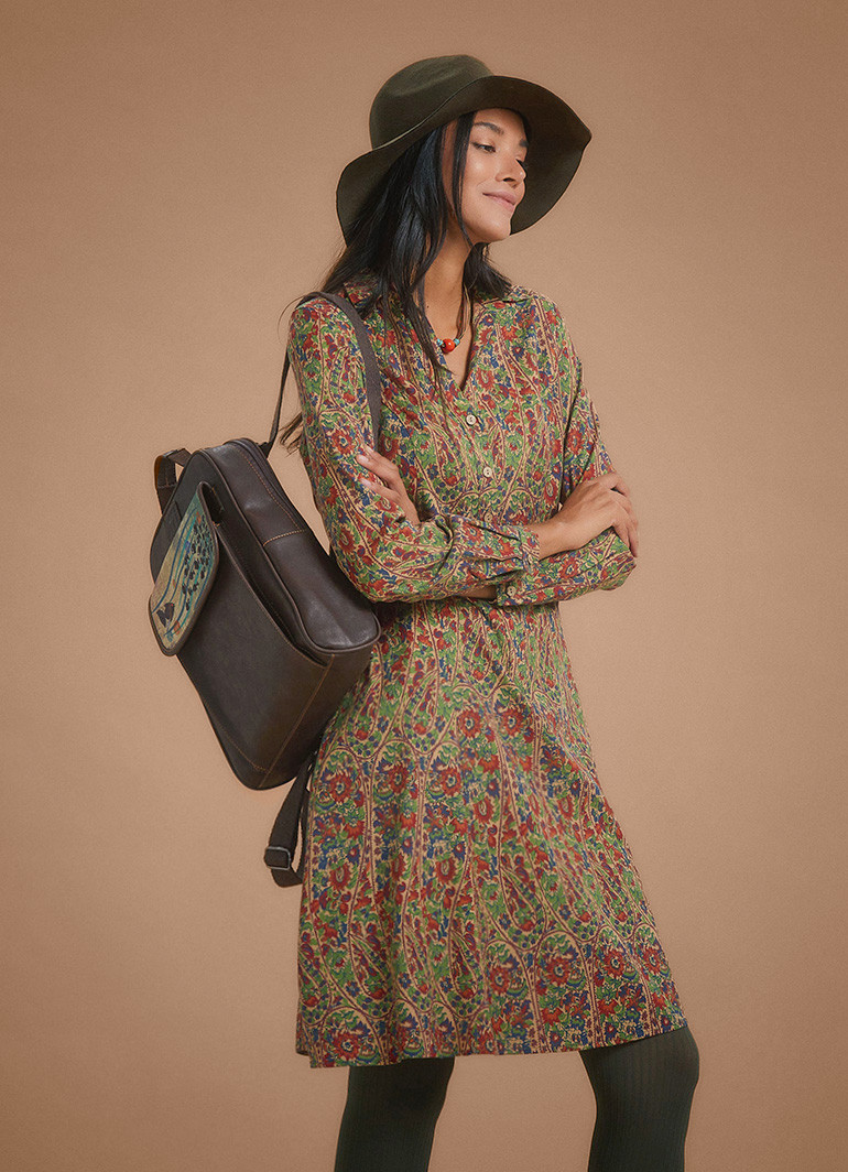 Gömlek Yaka, Düğme Detaylı, Etnik Desenli, Kloş Elbise