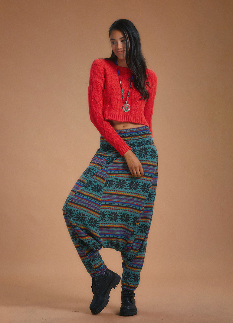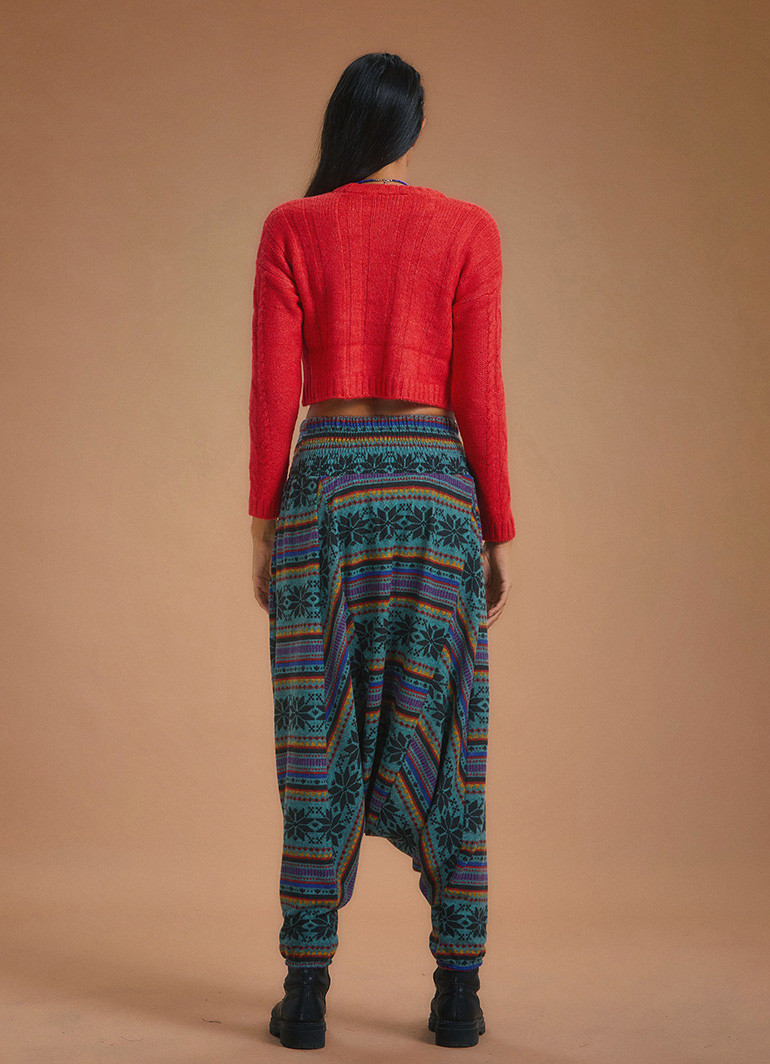 Gipe Bel Detaylı Kışlık Kadın Petrol Desenli Şalvar Pantolon 5137