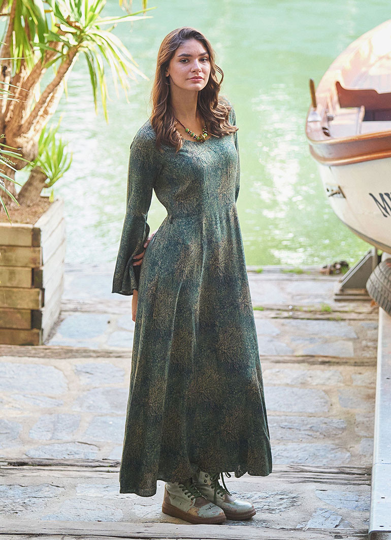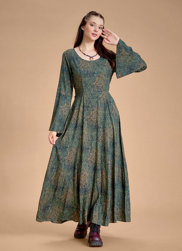 Kayık Yaka, Belden Bağlamalı, Maxi Boy, İspanyol Kol, Kışlık, Kadın Elbise
