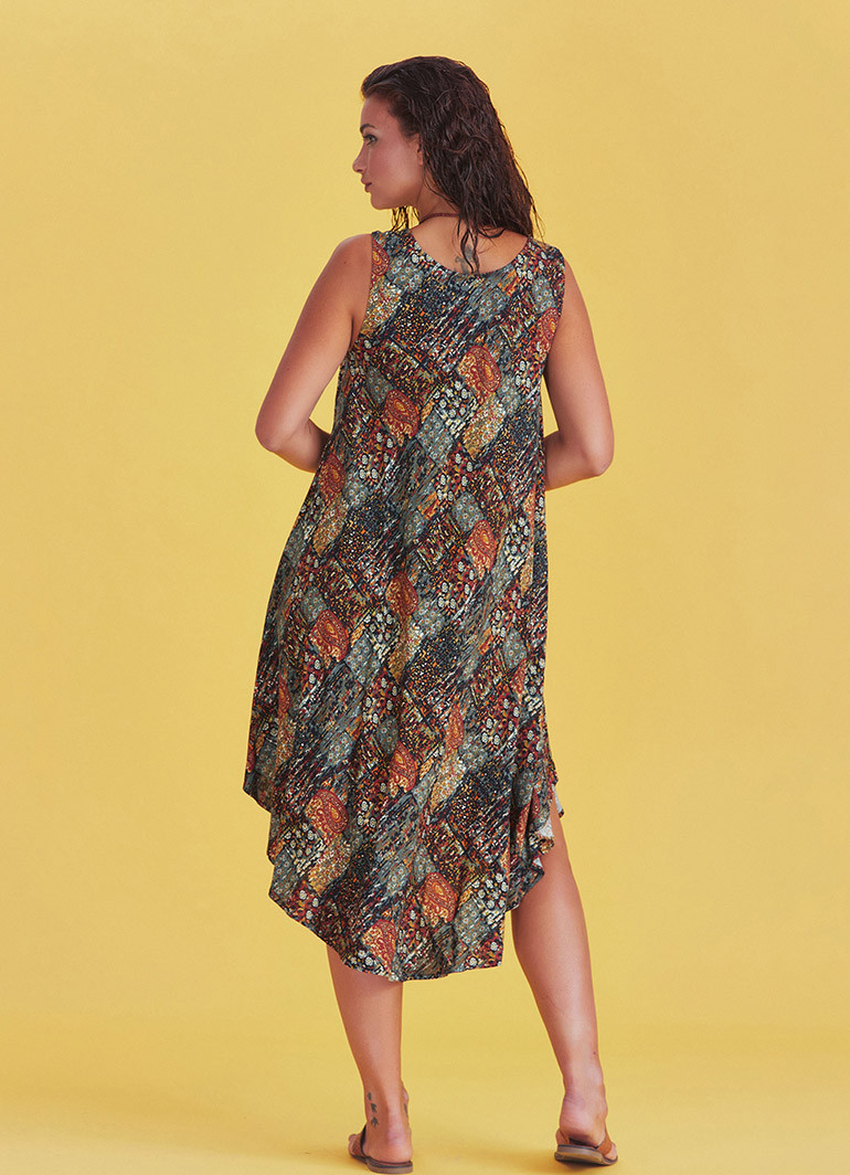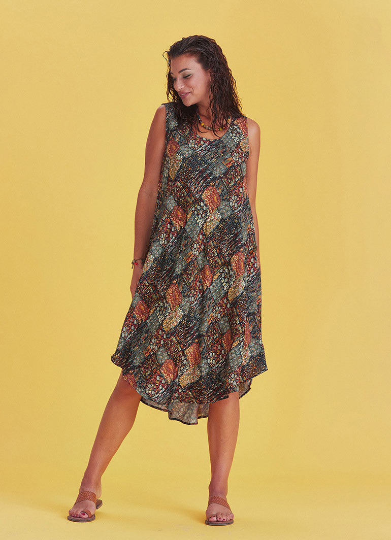 Haki Desenli Kayık Yaka Kolsuz Günlük Elbise 4937
