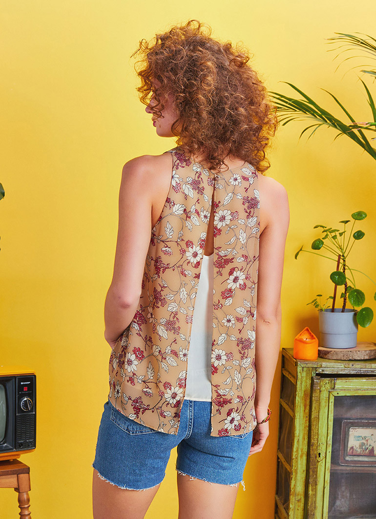 Önü Kısa Arkası Uzun Kesim, Sırt Detaylı, Kolsuz, Halter Yaka, Bohem Bluz