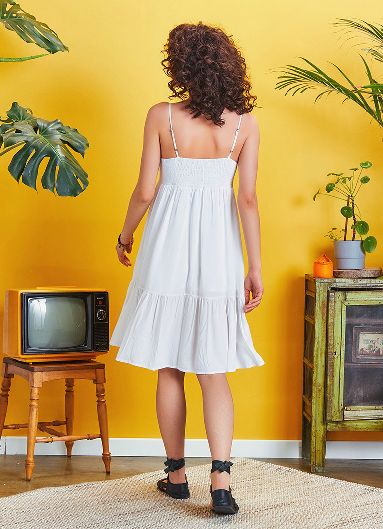 Ayarlanabilir Askılı, Sırtı Gipeli, Kare Yaka, Katlı, Midi Elbise