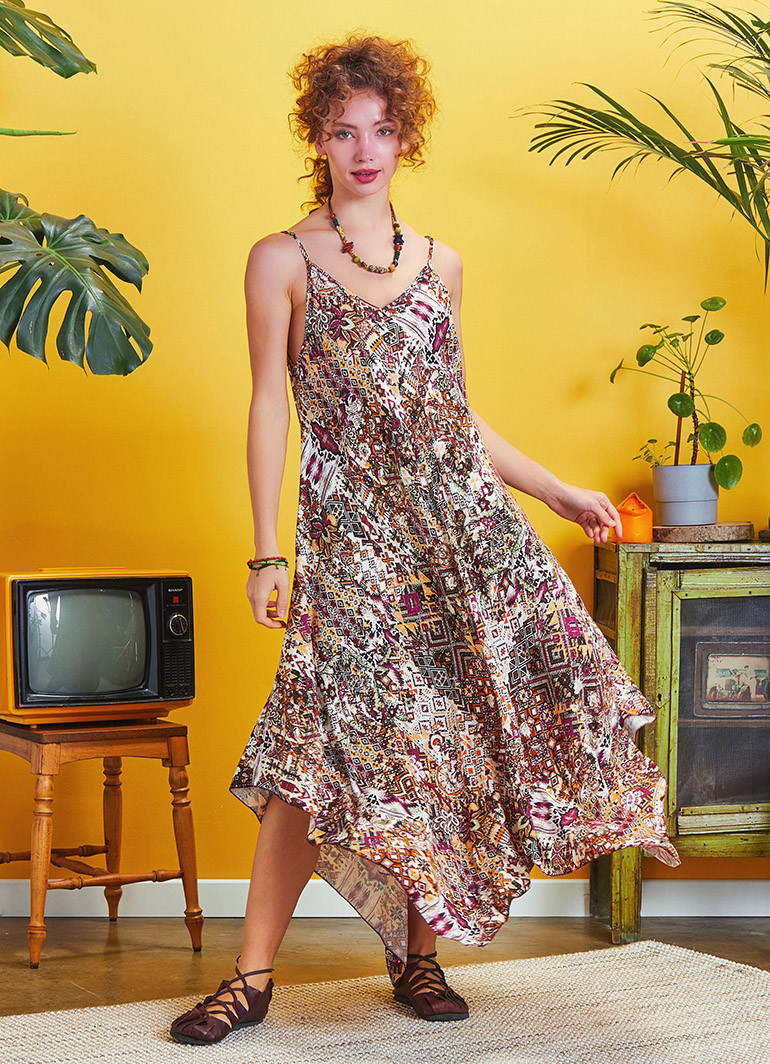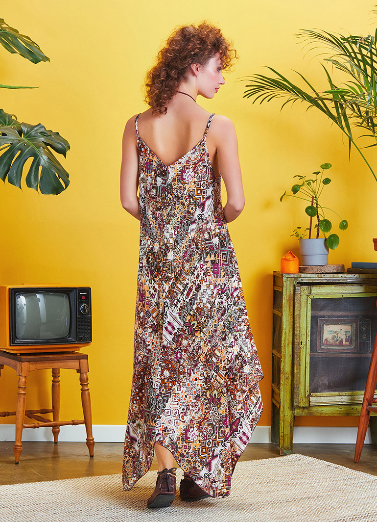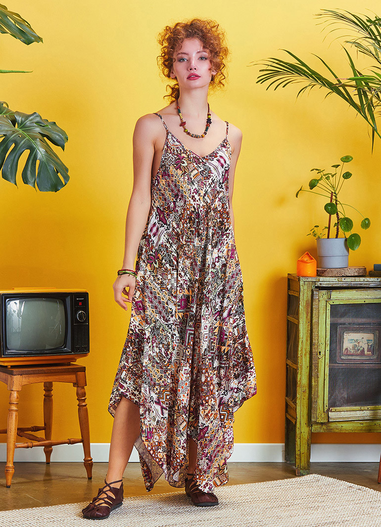 V Yaka, Asimetrik Etek, Ayarlanabilir Askılı, Yazlık Elbise