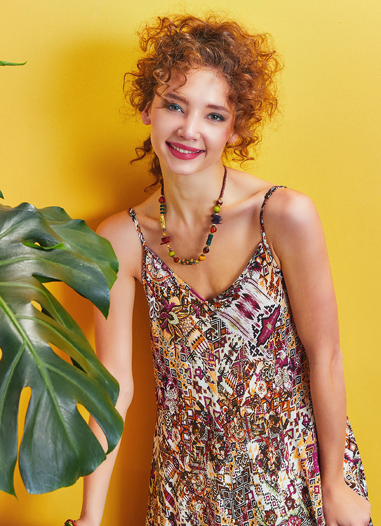 İp Askılı Mor Desenli Yazlık Elbise 5190