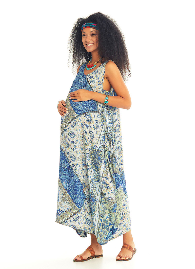 Düğme Detaylı, Kayık Yaka, Uzun, Siyah Hamile Elbise