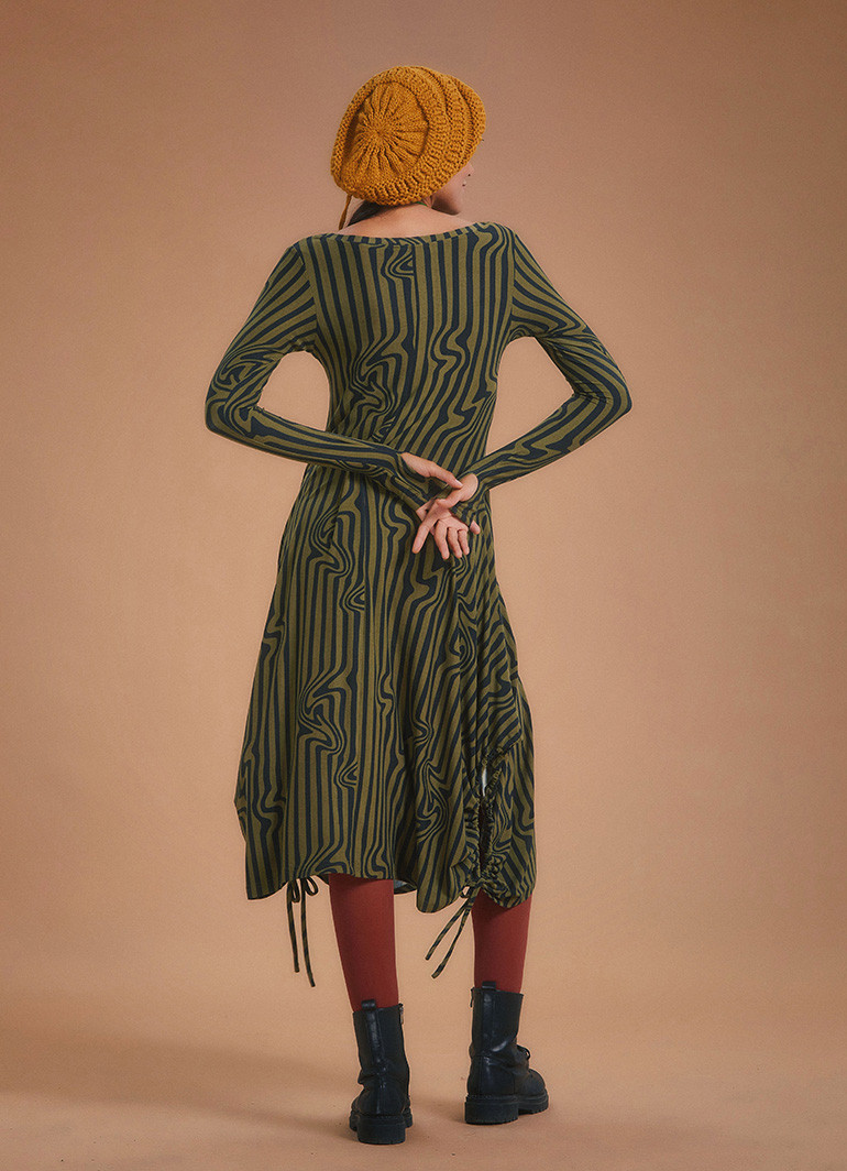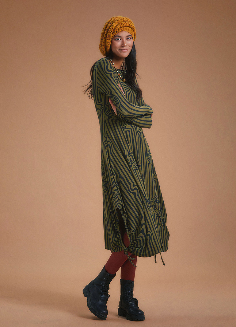 Kayık Yaka, Uzun Kol, Kışlık, Desenli Uzun Elbise