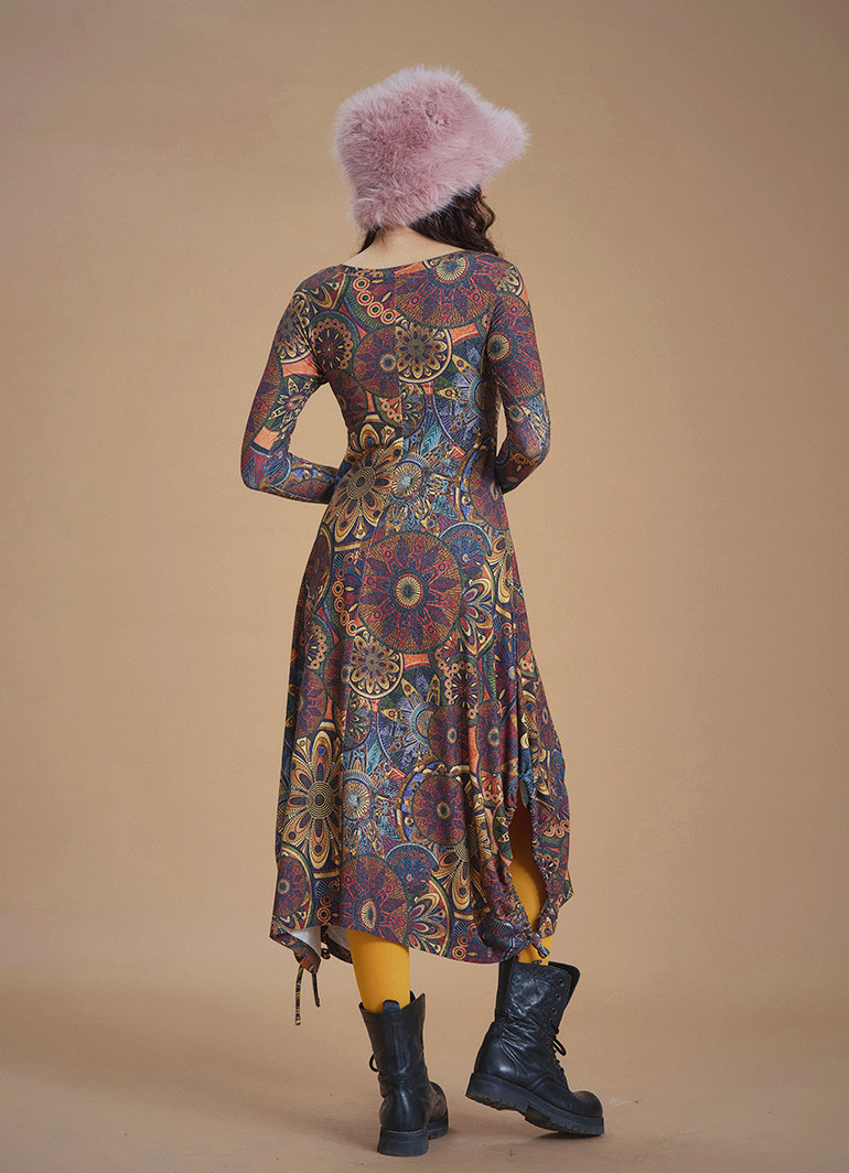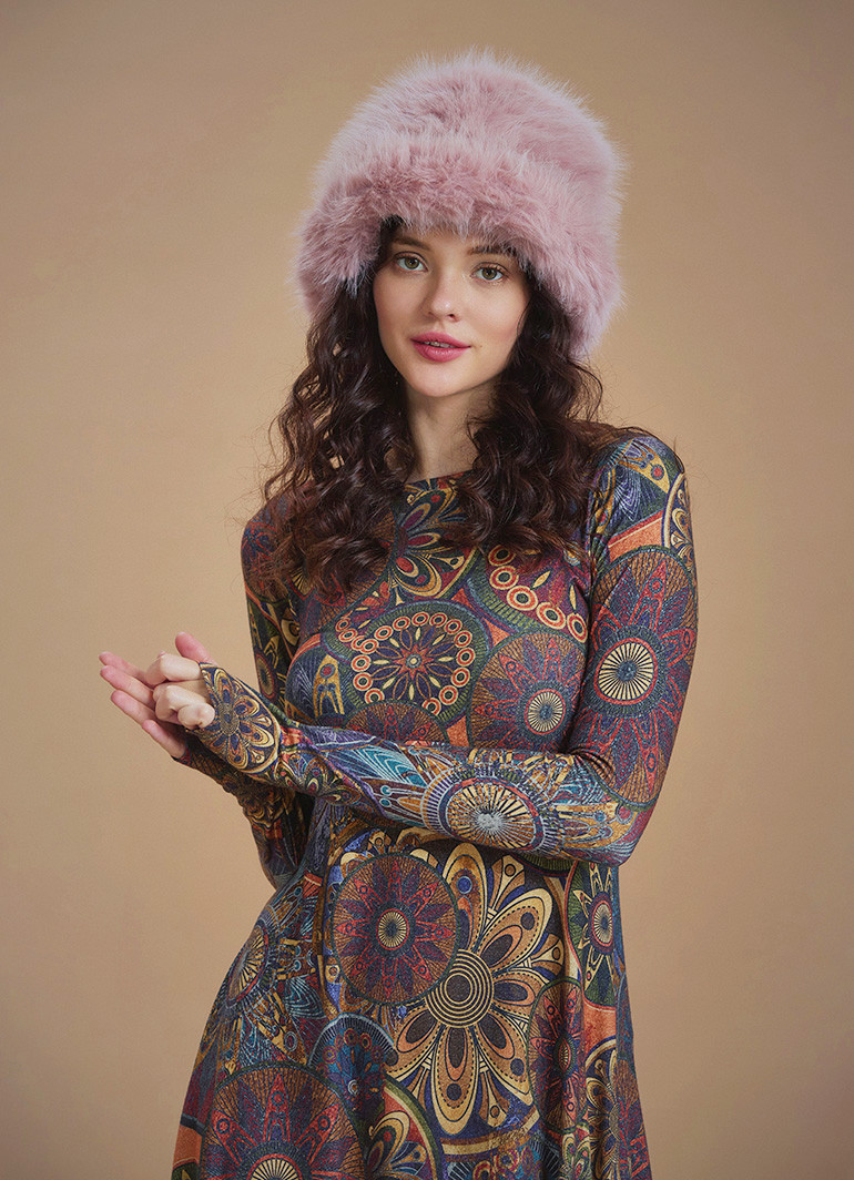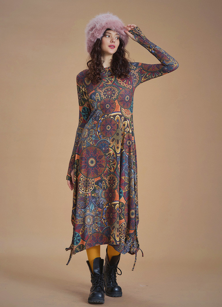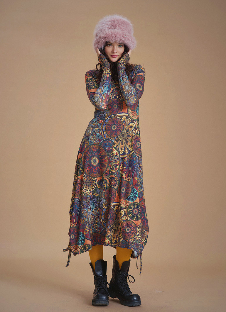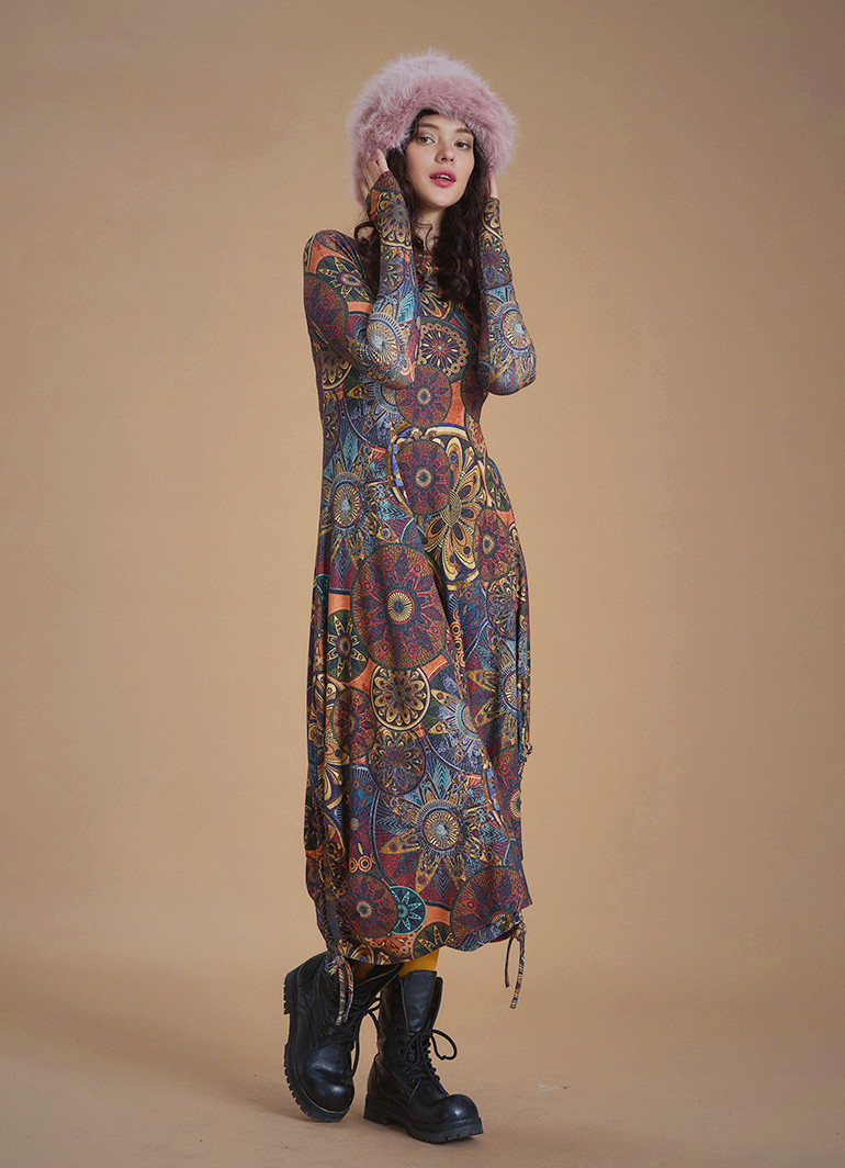 Kayık Yaka, Uzun Kol, Kışlık, Desenli Uzun Elbise