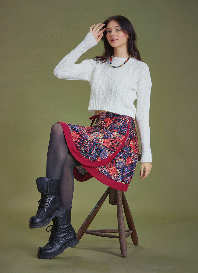 Geniş Biye Detaylı Etek Ucu, Yuvarlak Ön Anvelop Kesim, Biye Bel Bağcıklı, Kısa Anvelop Etek
