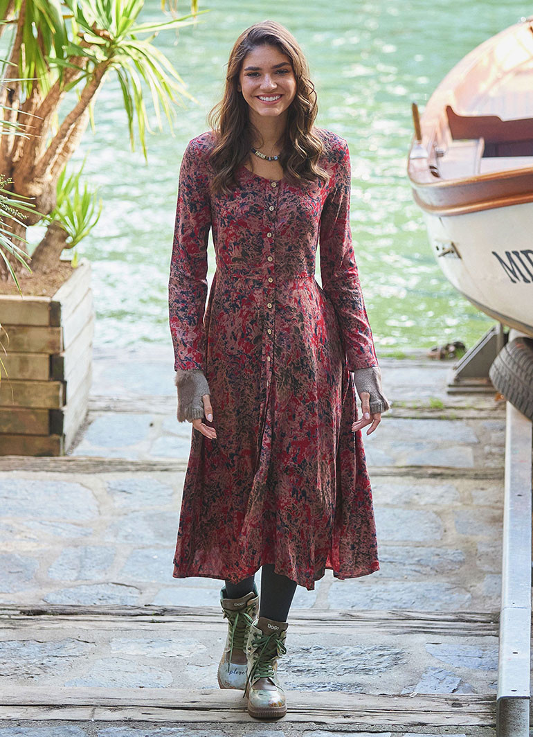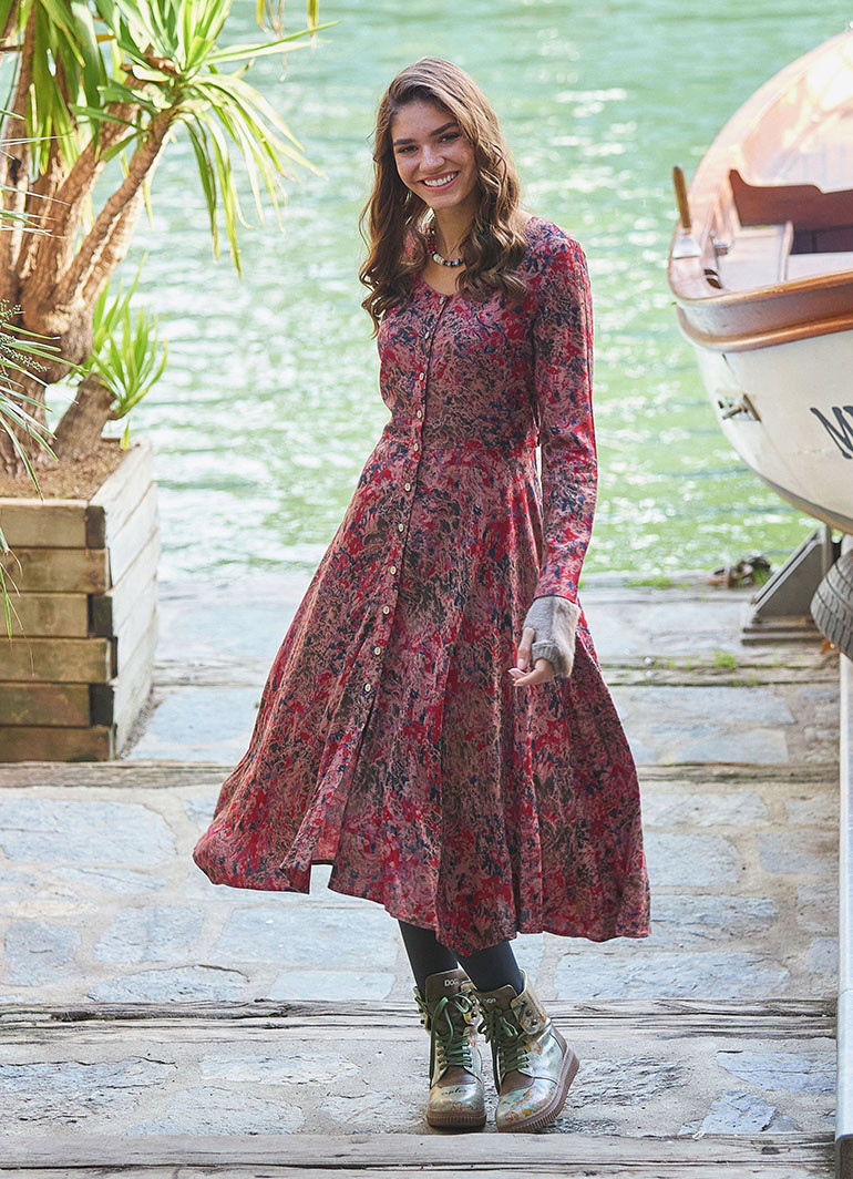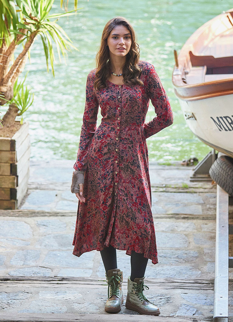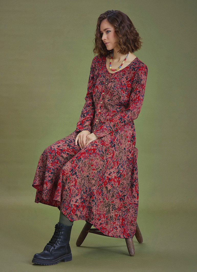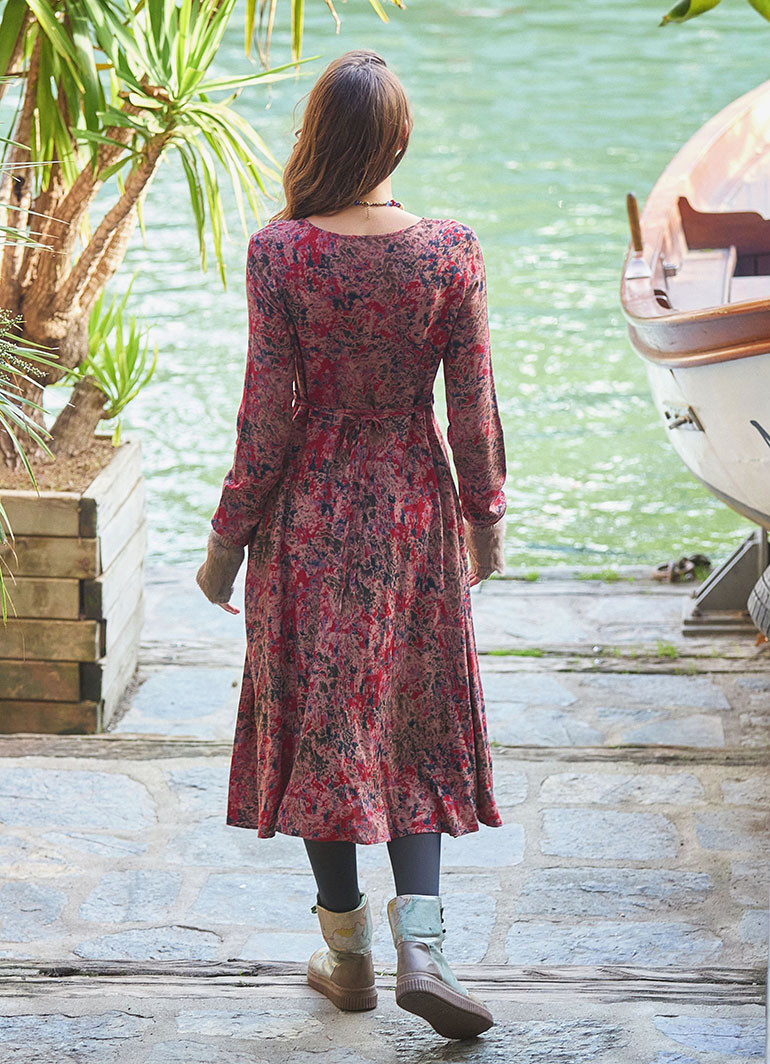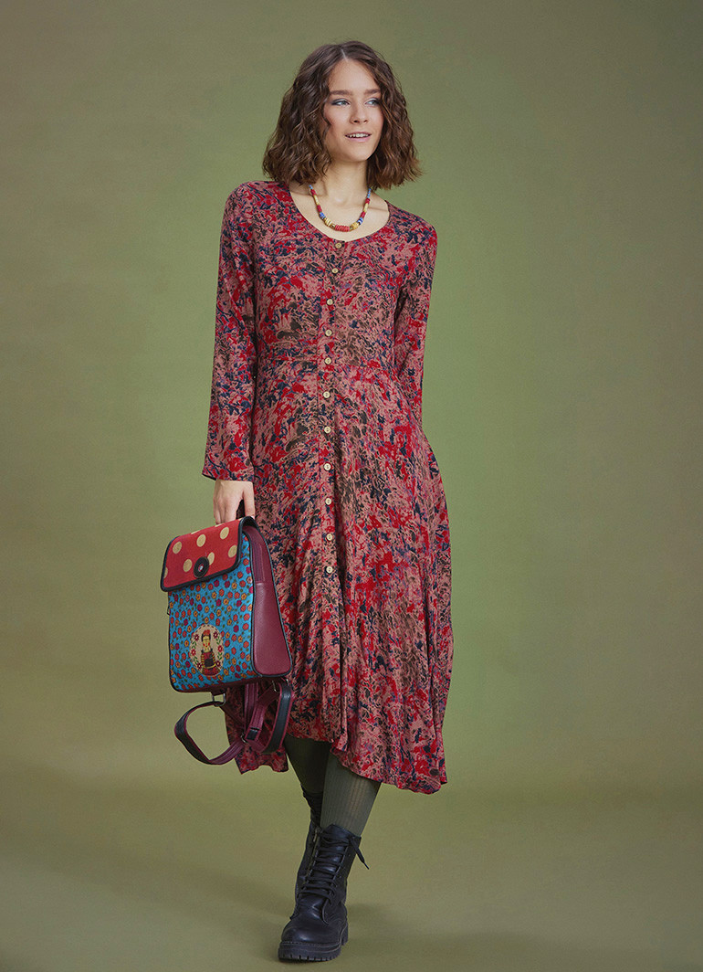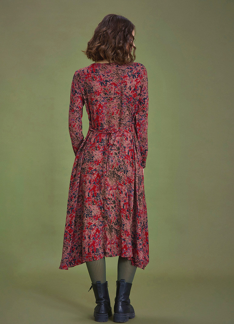 Yuvarlak Yaka, Desenli, Asimetrik Kesim, Kışlık, Kadın Elbise