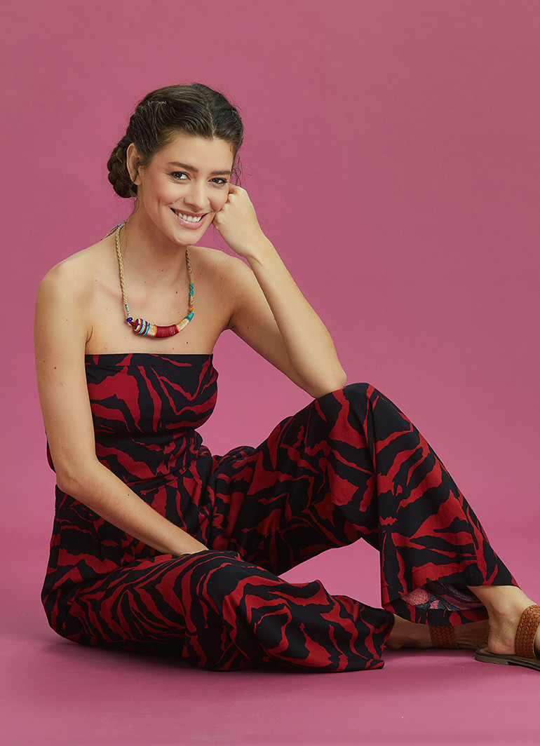 Kuşak Bağlamalı Sırt Detay, Cepli, Arka Bel Lastikli, Geniş Paça, Straplez Tulum