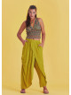Kruvaze Ön Detay Beli Lastikli Salaş Olive Pantolon 5043