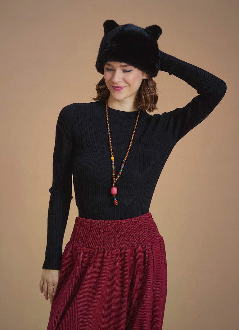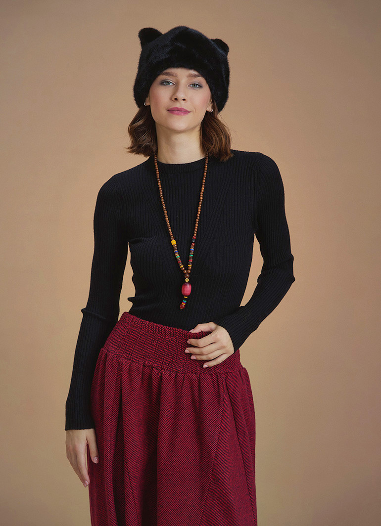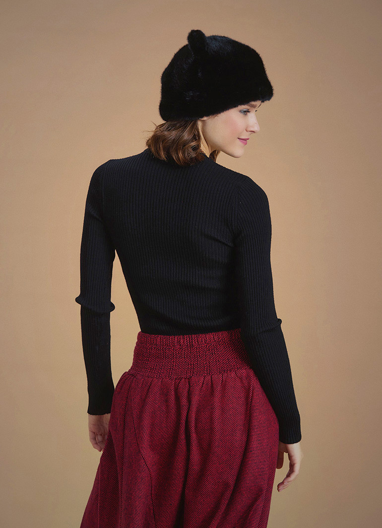Gömlek Yaka Rahat Kesim Düğmeli Siyah Kışlık Bluz 7089
