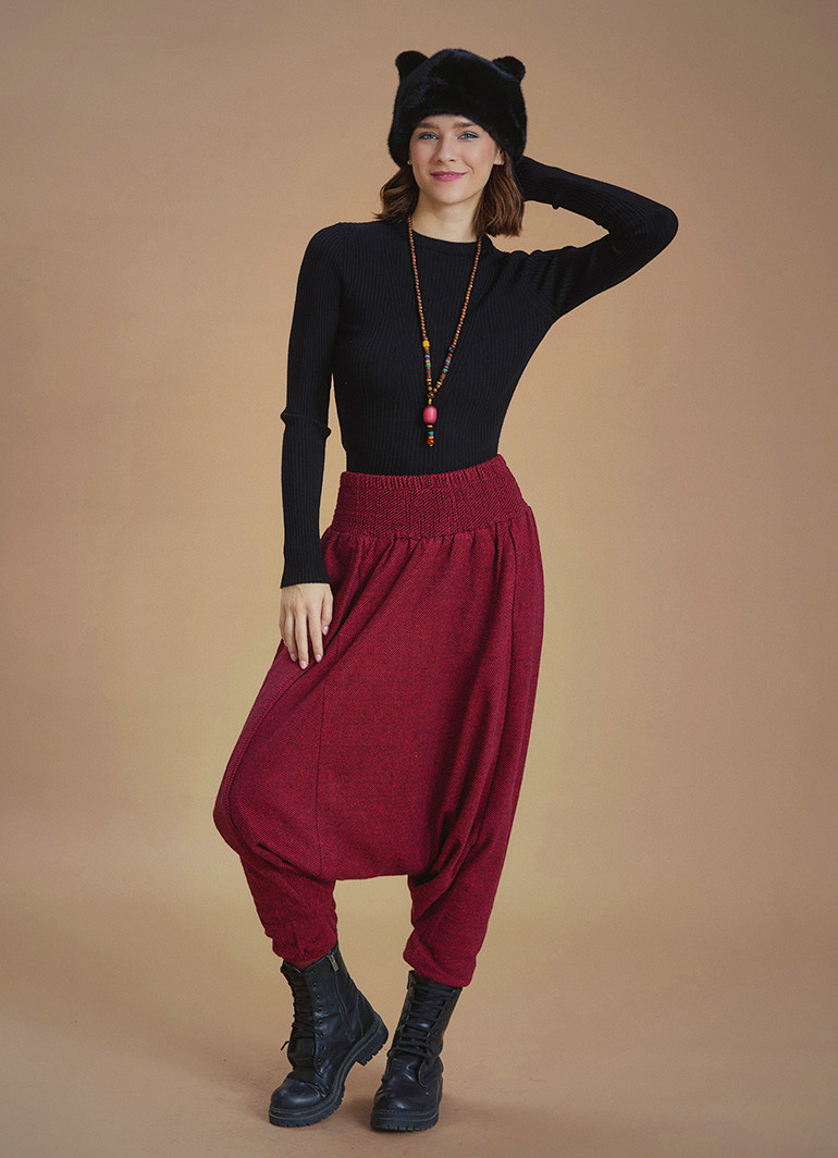 Boyundan Bağlamalı Pacası Lastikli Lila Kadın Bohem Tulum 6805