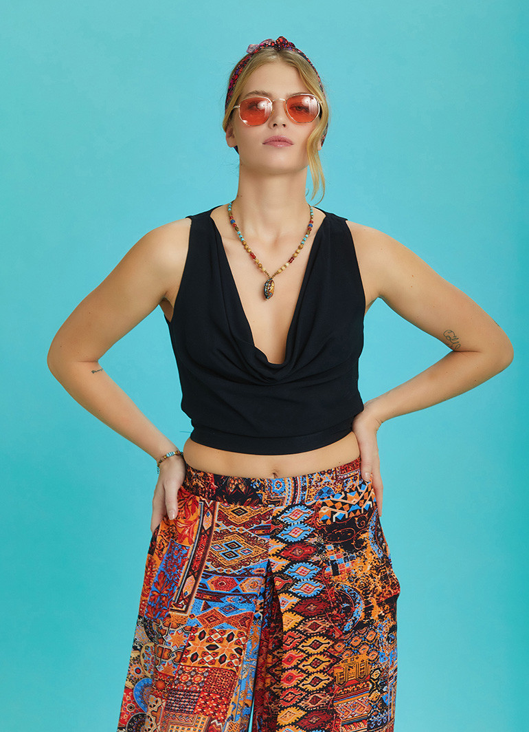 Degaje Yaka Detaylı, Kolsuz, Etek Ucu Lastikli, Şık Crop Bluz