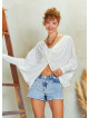 Dökümlü Yaka, Çapraz Kesim Ön Detay, Yarasa Kol, Bohem Tasarım Bluz