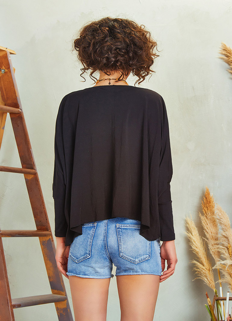 Dökümlü Yaka, Çapraz Kesim Ön Detay, Yarasa Kol, Bohem Tasarım Bluz