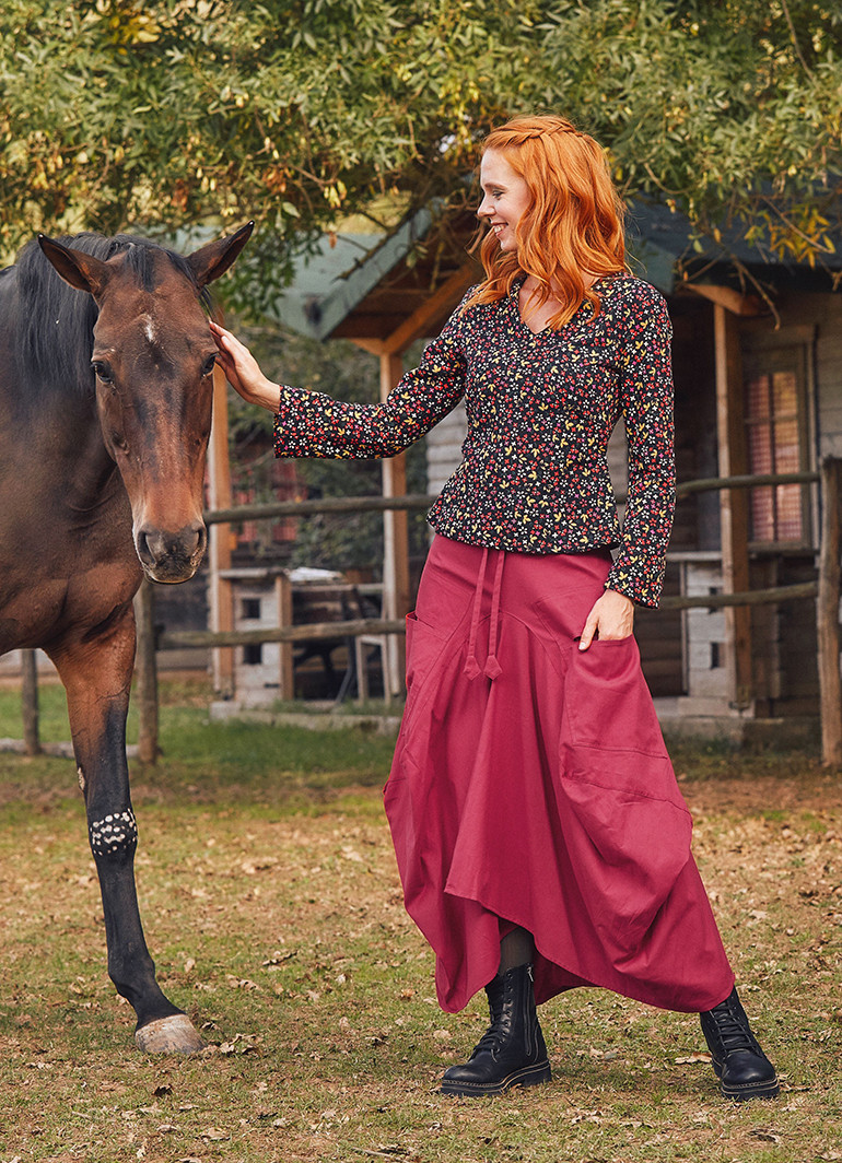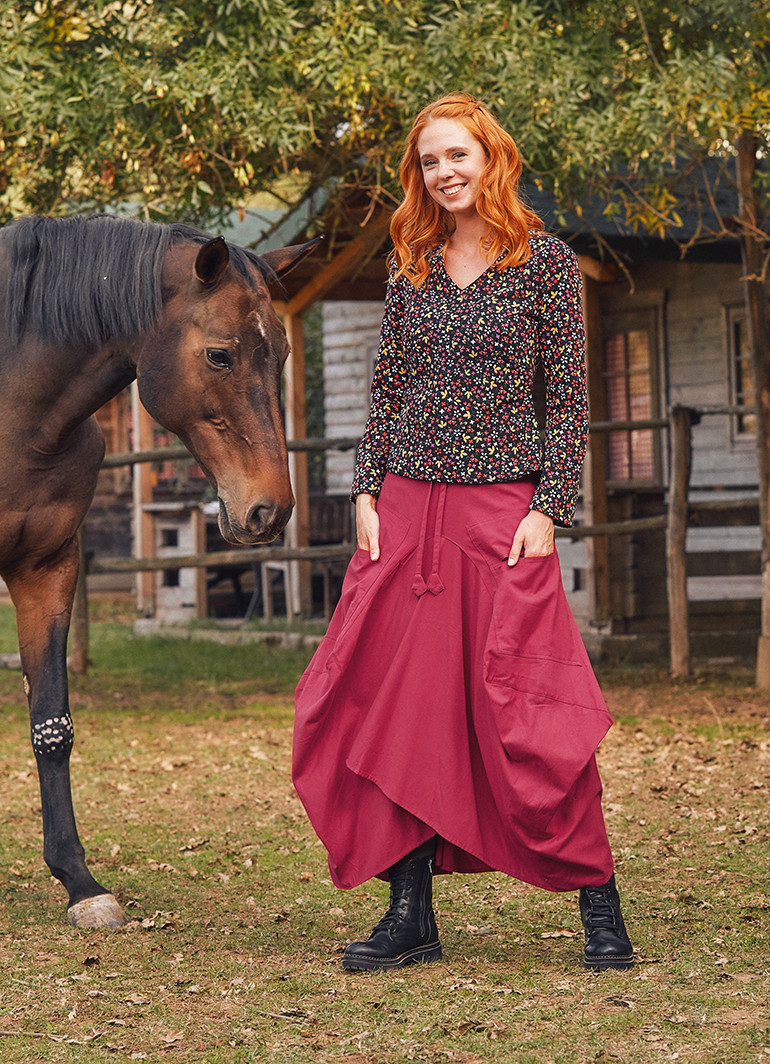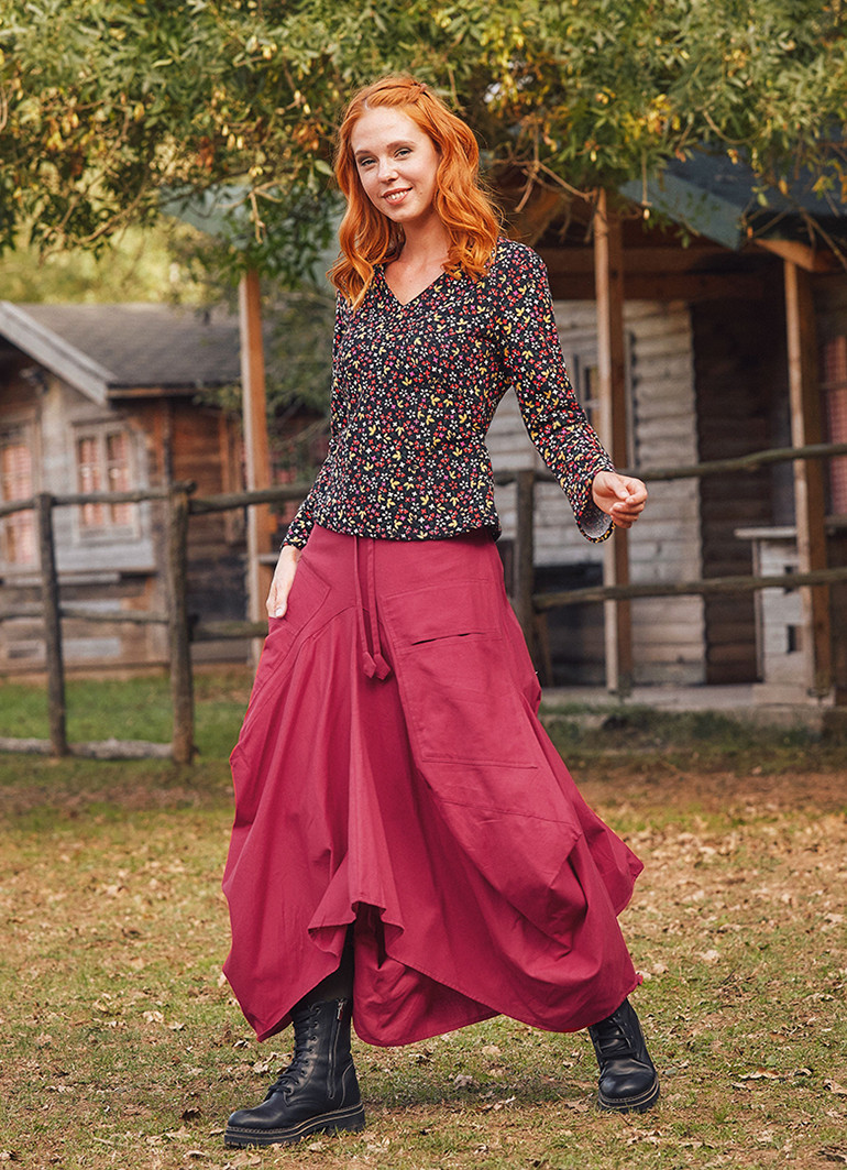 Sezonun trendlerine uygun, her mevsim rahatlıkla tercih edebileceğiniz bu kırmızı uzun etekle stilinize canlılık katın.